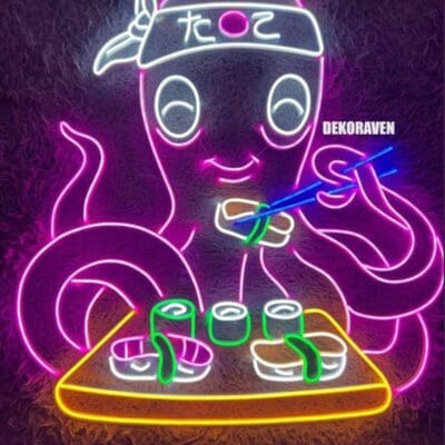 Sushi Yiyen Ahtapot Neon Led Tabela Dekoratif Aydınlatma