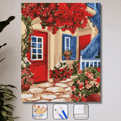 Sayılarla Boyama Seti Kırmızı Çiçekli Ev
