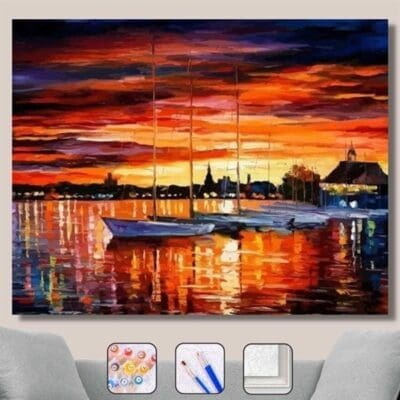 Sayılarla Boyama Seti Teknelerle Günbatımı