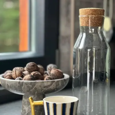 Altın Detaylı Lacivert Dik Çizgili Seramik Kahve Fincanı
