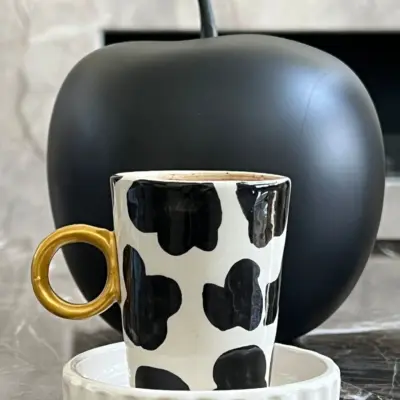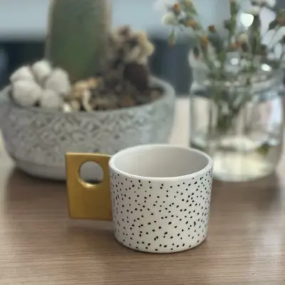 Altın Dikdörtgen Kulp Noktalı Mug Kupa