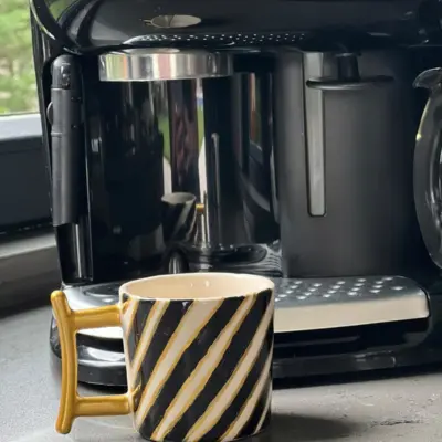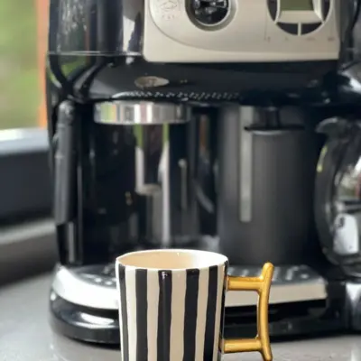 Altın Detaylı Siyah Dik Çizgili Seramik Kahve Fincanı