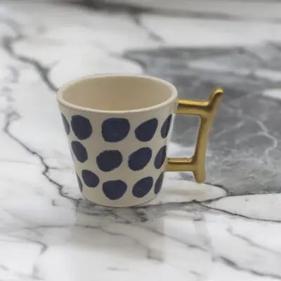 Orijinal fiyat: ₺482,27.₺416,00Şu andaki fiyat: ₺416,00.Altın Detaylı Lacivert Noktalı Seramik Kahve Fincanı