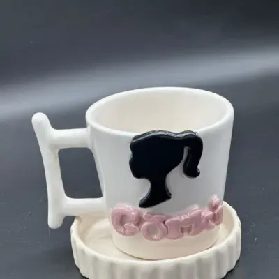 Barbiee Figürlü Siyah Pembe İsimli Kupa Mug