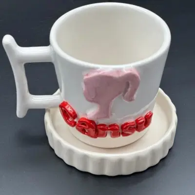 Barbiee Figürlü Pembe Kırmızı İsimli Kupa Mug