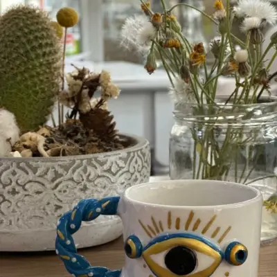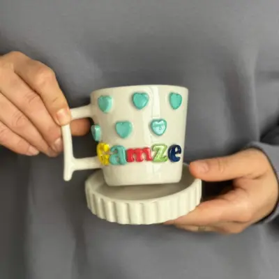 Boncuk Kulp Turuncu Mug Fincan Kupa
