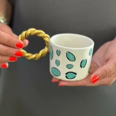 Burgu Kulp Gold Detay Göz 2 Noktalı Kalpli Mug Kupa Fincan