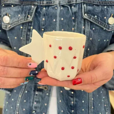 Burgu Kulp Gold Detay Altın Noktalı Kalpli Mug Kupa Fincan