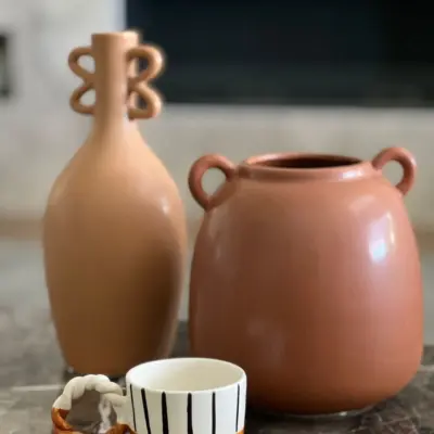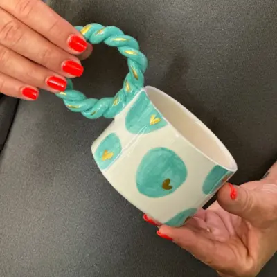 Burgu Kulp Kahve Siyah Çizgili Mug Fincan Kupa