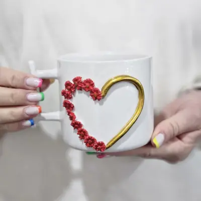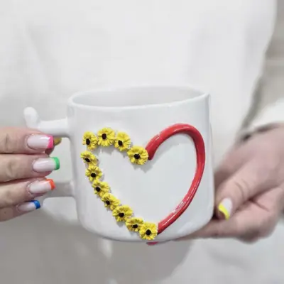 Orijinal fiyat: ₺663,94.₺532,48Şu andaki fiyat: ₺532,48.Büyük Boy 420ml Ayçiçeği Kalp Temalı Kupa