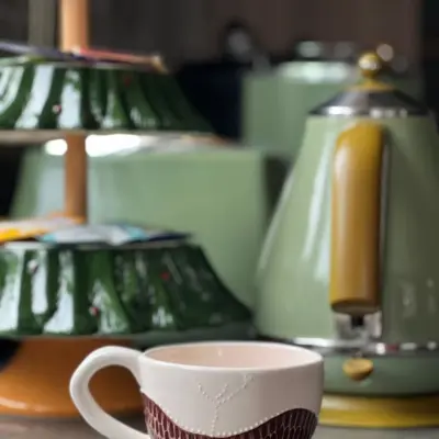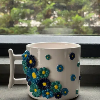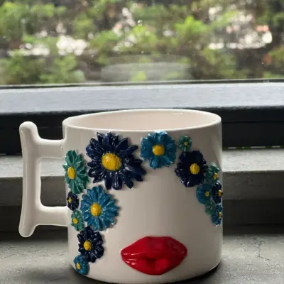 Büyük Boy 420ml Rengarenk Çiçekli Dudaklı Temalı Kupa