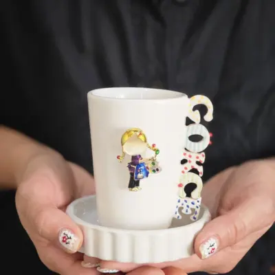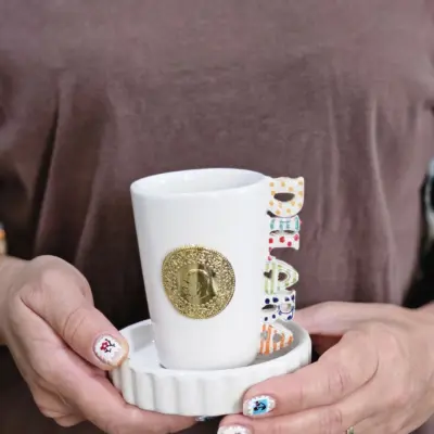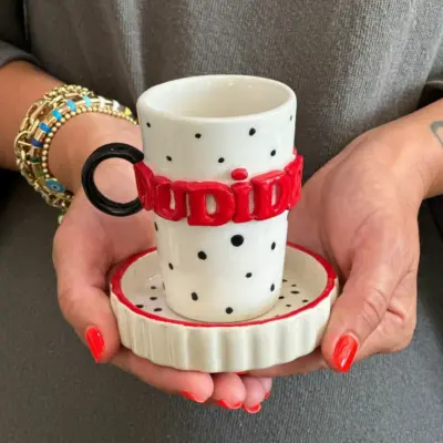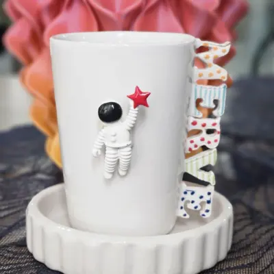 El Yapımı Özel Tasarım Yuvarlak Kulp İsimli Fincan