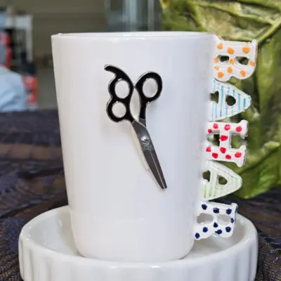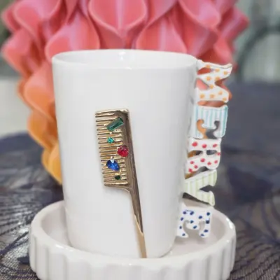 El Yapımı İsimli Kuaförlere Özel Taşlı Tarak Figürlü Fincan