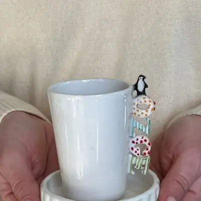 Rengarenk Kabartma Kalpli Mug Kupa Fincan