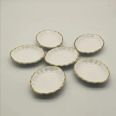 6 Adet Altın Yaldızlı Yuvarlak Tırtıklı Çerezlik Sosluk Reçellik Şekerlik