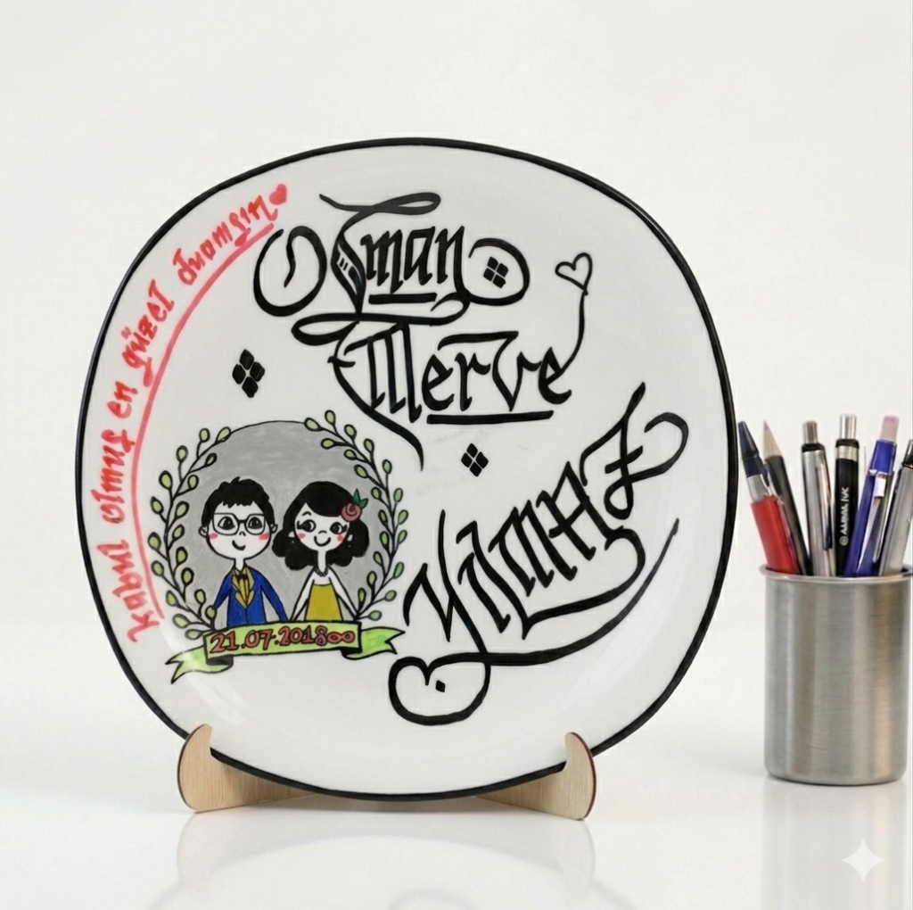 Kız- erkek İllüstrasyonlu Kaligrafi Tabak
