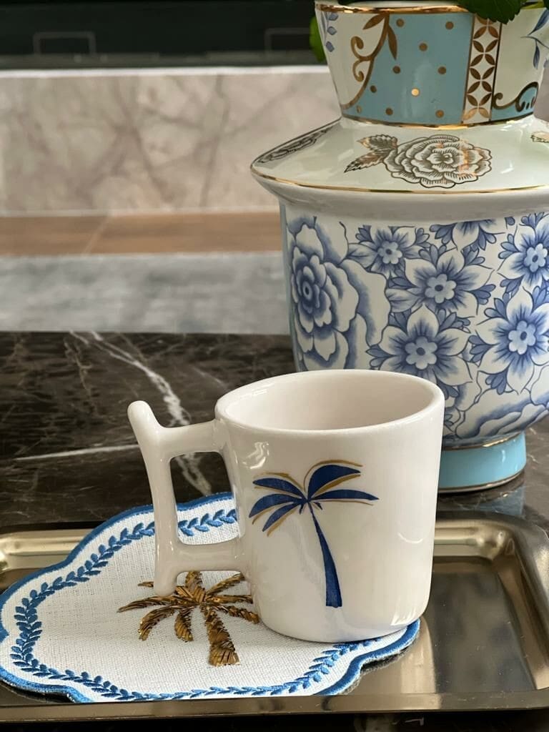 Altın Detaylı Lacivert Diken Çizgili Seramik Kahve Fincanı