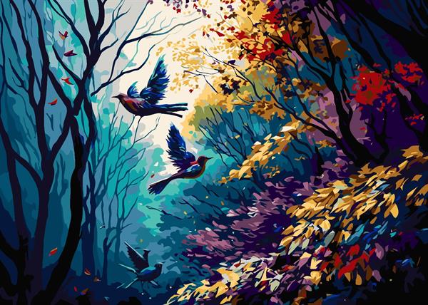 Sayılarla Boyama Seti Kuşlarla Dolu Bir Orman