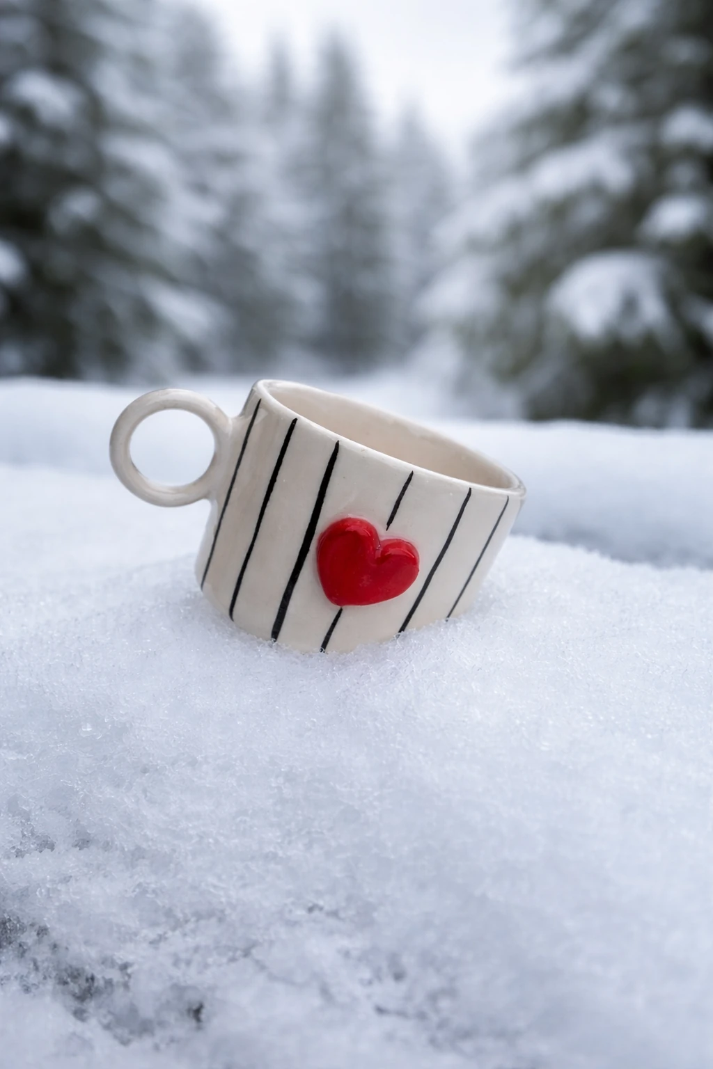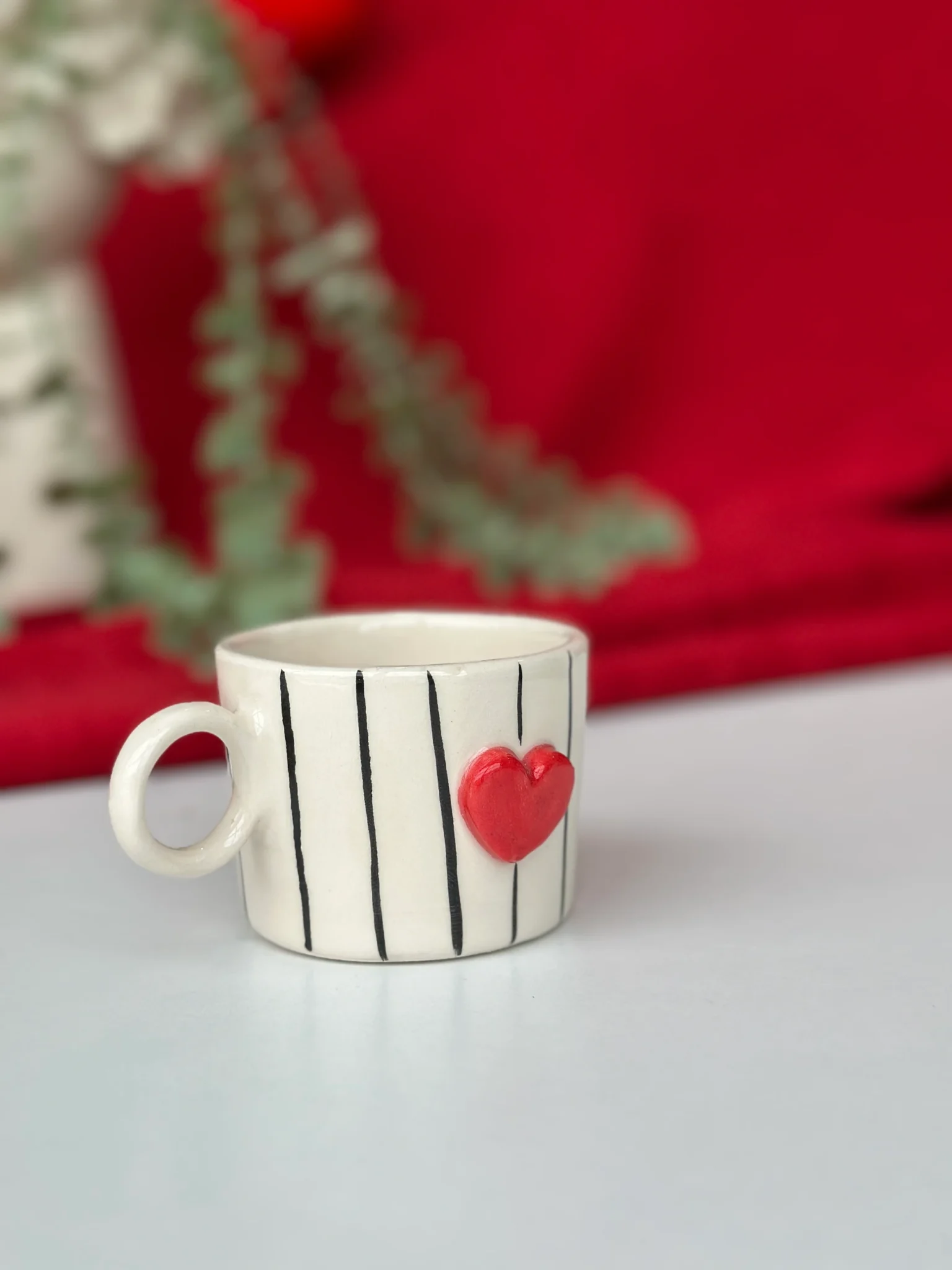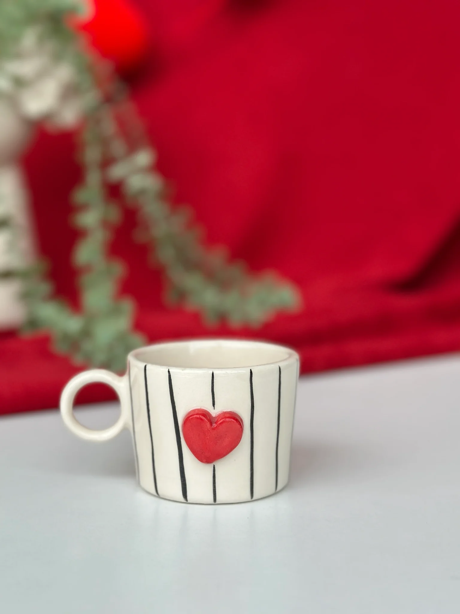 Kalpli ve çizgili tasarımıyla sıcak ve samimi bir kahve deneyimi sunan bu 160 ml’lik seramik fincan, her yudumda el emeğini hissettirir. Minimal çizgiler ve kırmızı kalp detayı, ürüne hem romantik hem de modern bir hava katar.