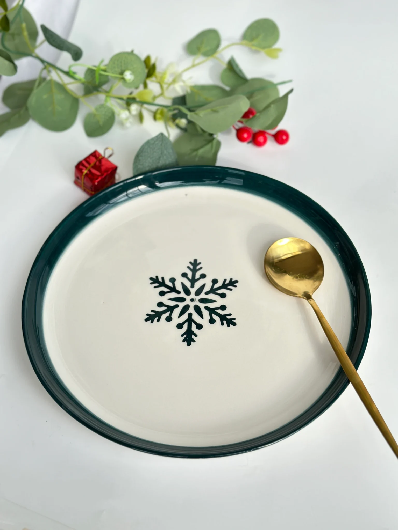 1 Adet Kar Tanesi Desenli Seramik Pasta Tabağı – Çap 27 cm