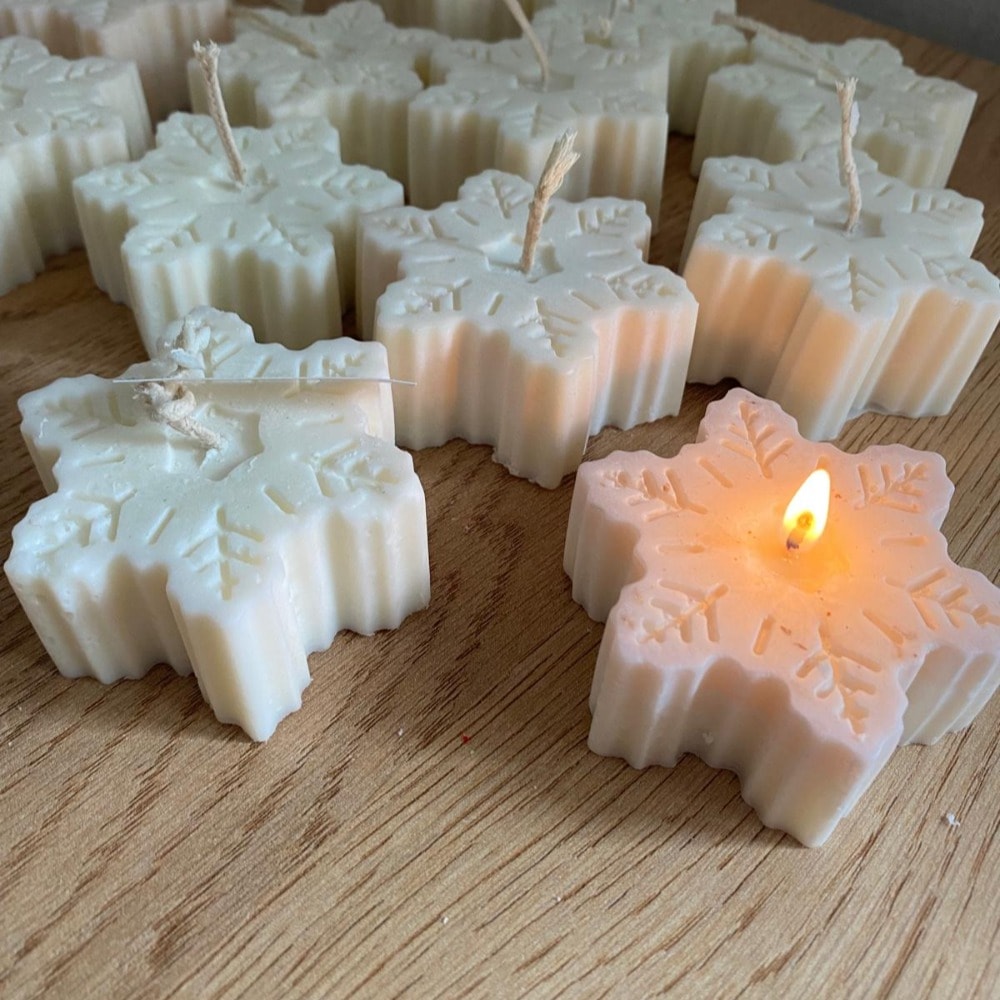 3;lü Kar Tanesi Model Dekoratif Yılbaşı Mumu Doğal Soya Mumu