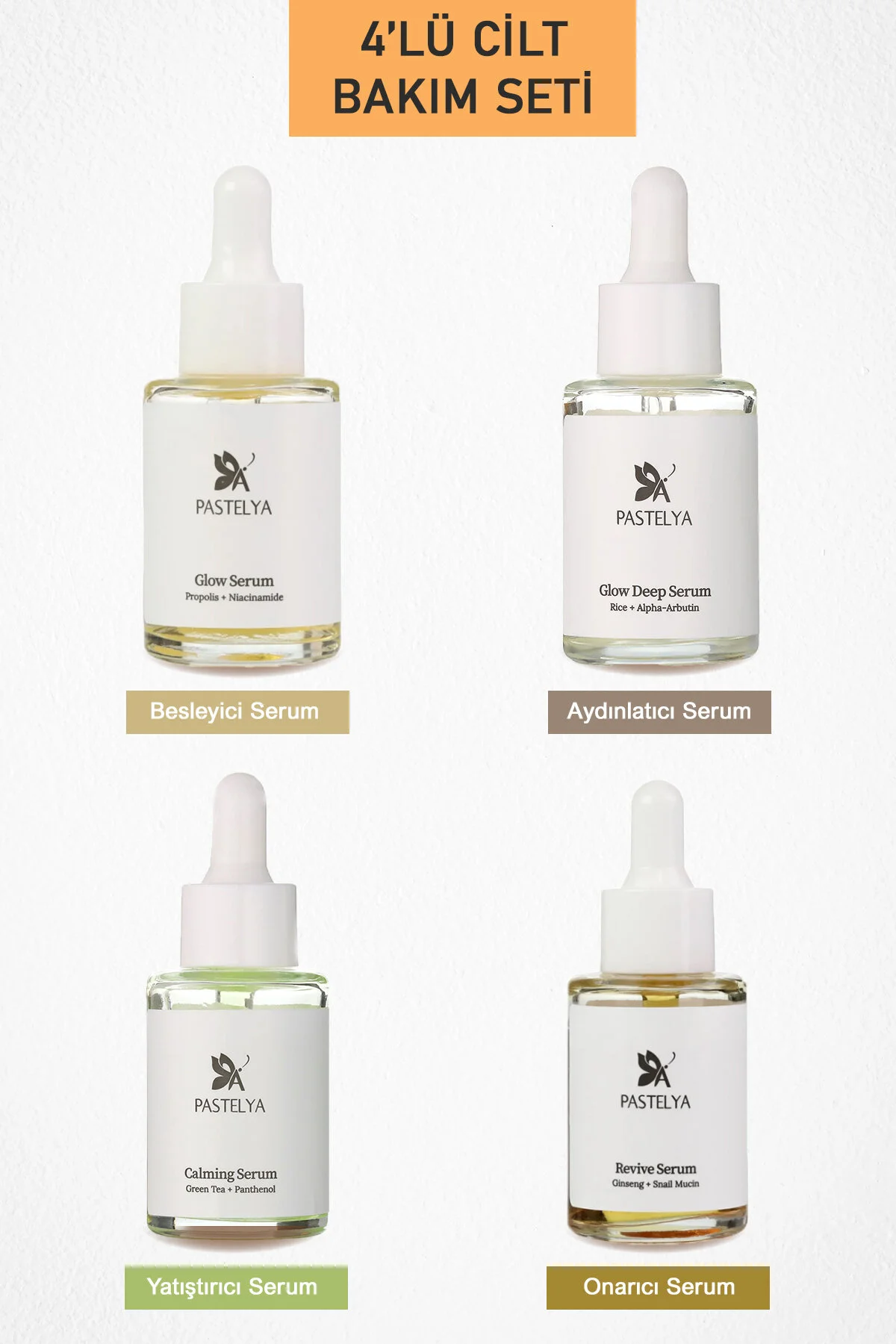 4’lü Cilt Bakım 4 güçlü Serum Besleyici + Aydınlatıcı + Yatıştırıcı + Onarıcı Serum 1