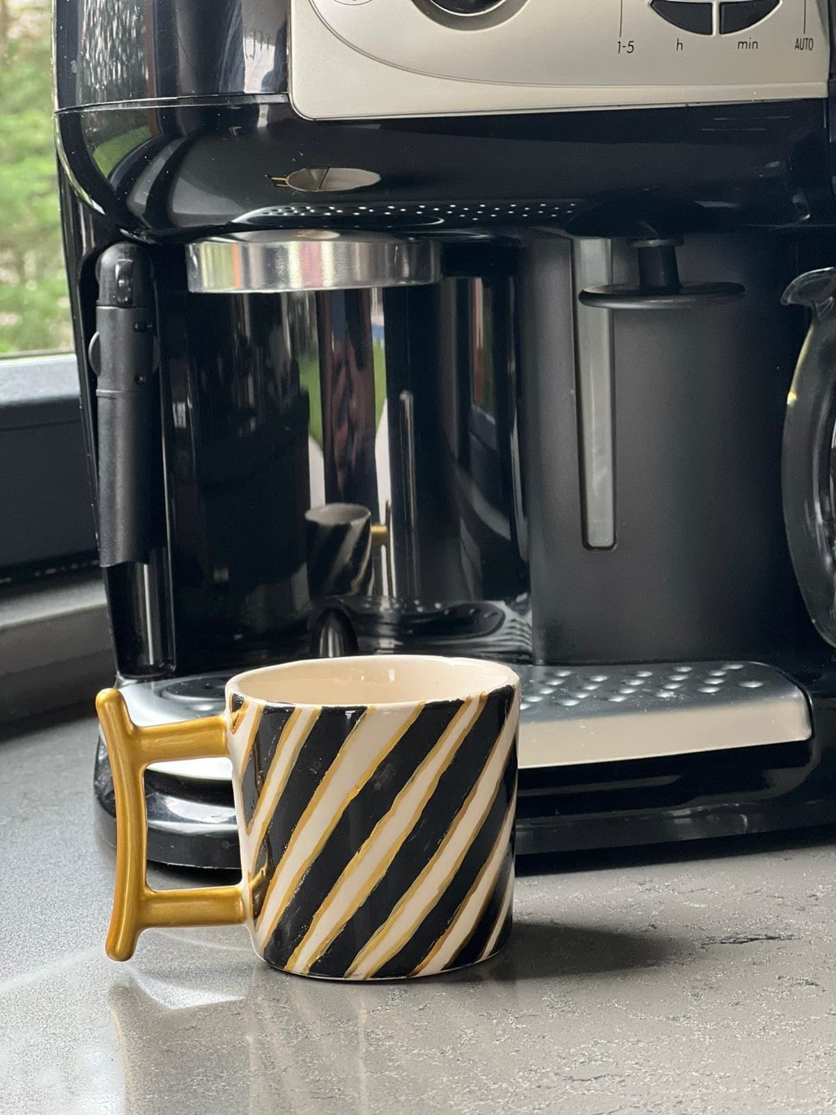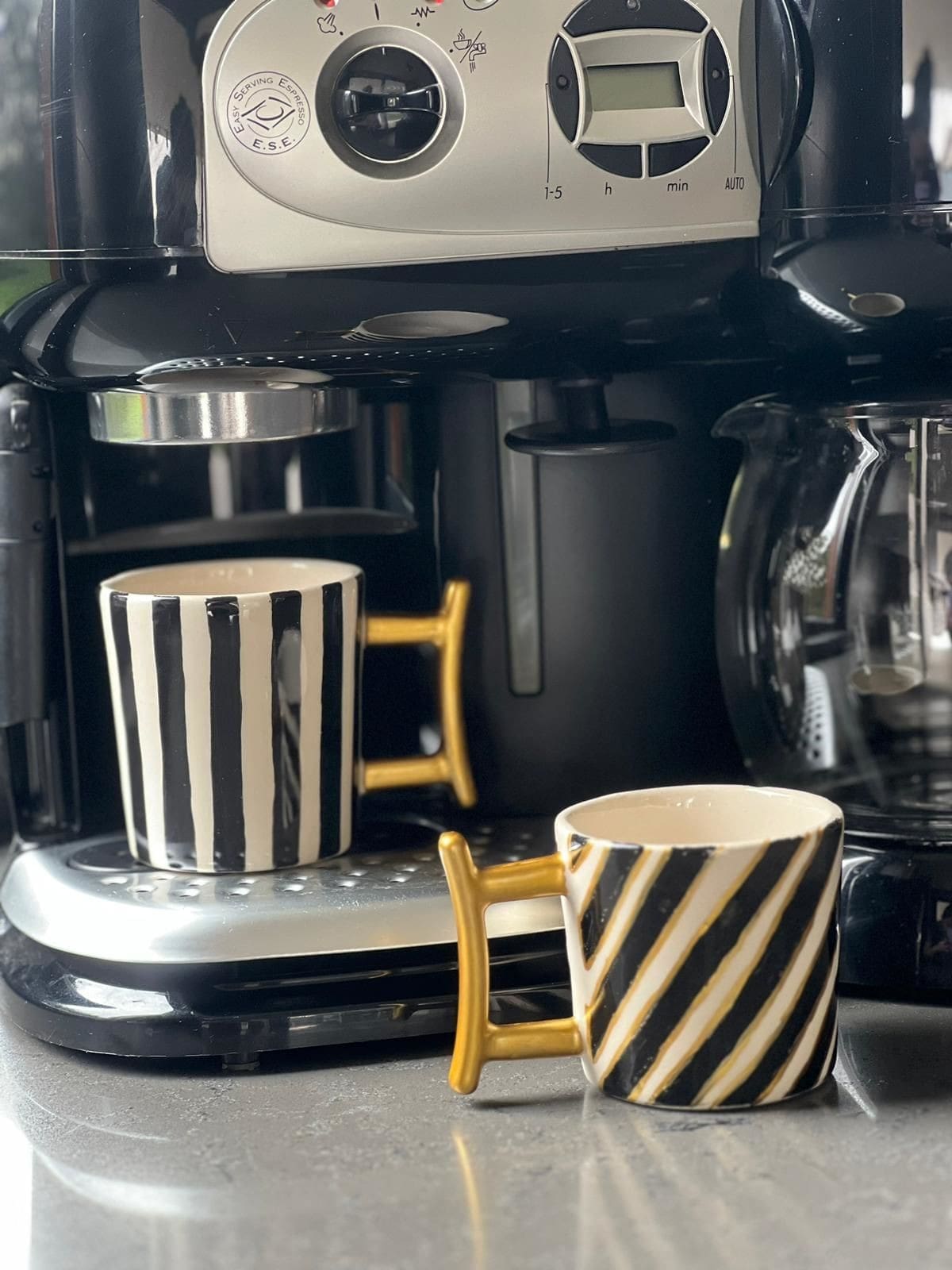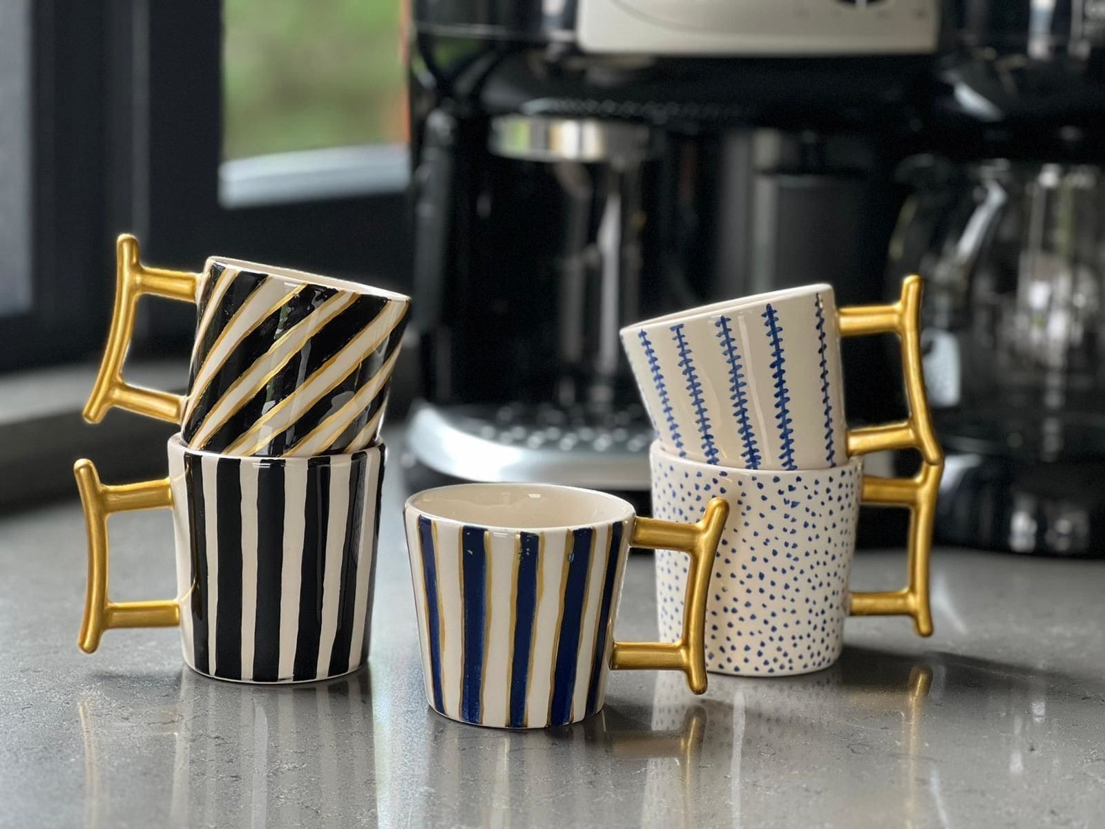 Altın Detaylı Siyah Yan Çizgili Seramik Kahve Fincanı