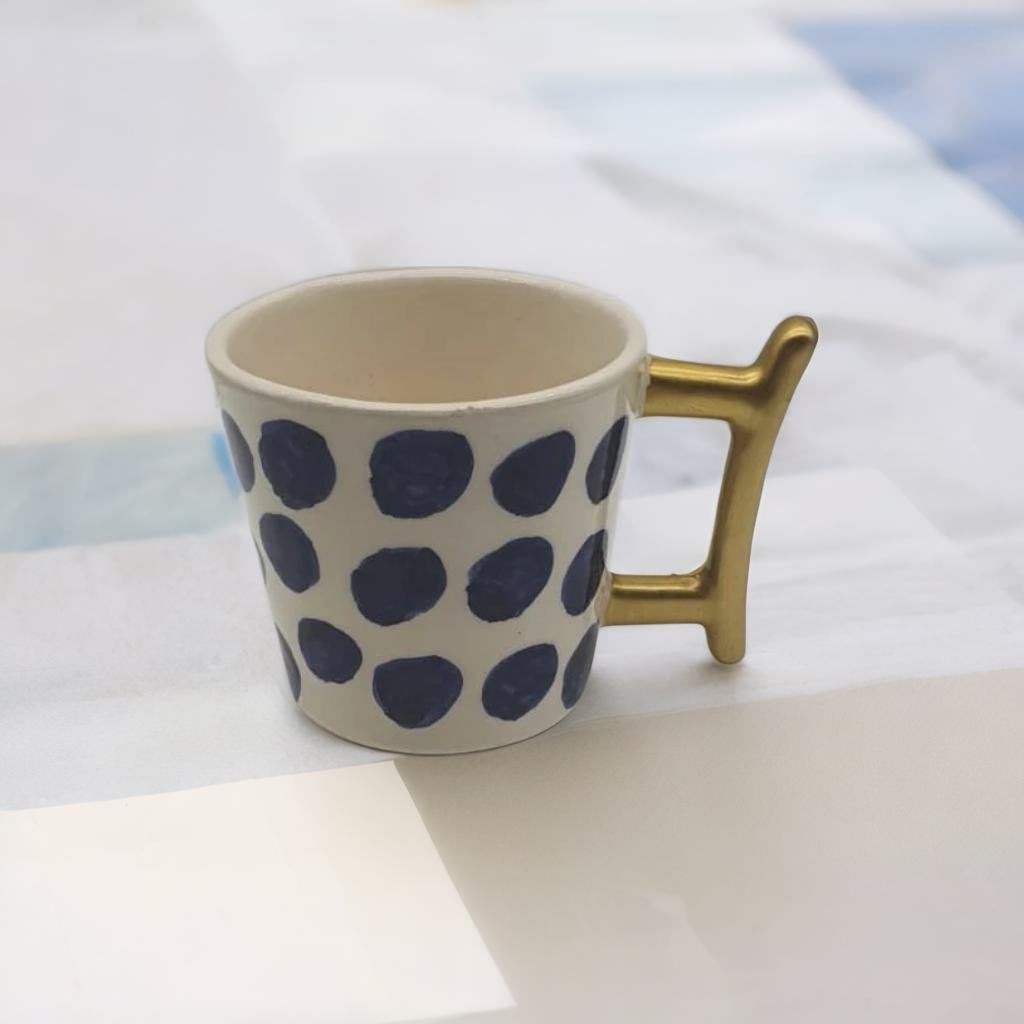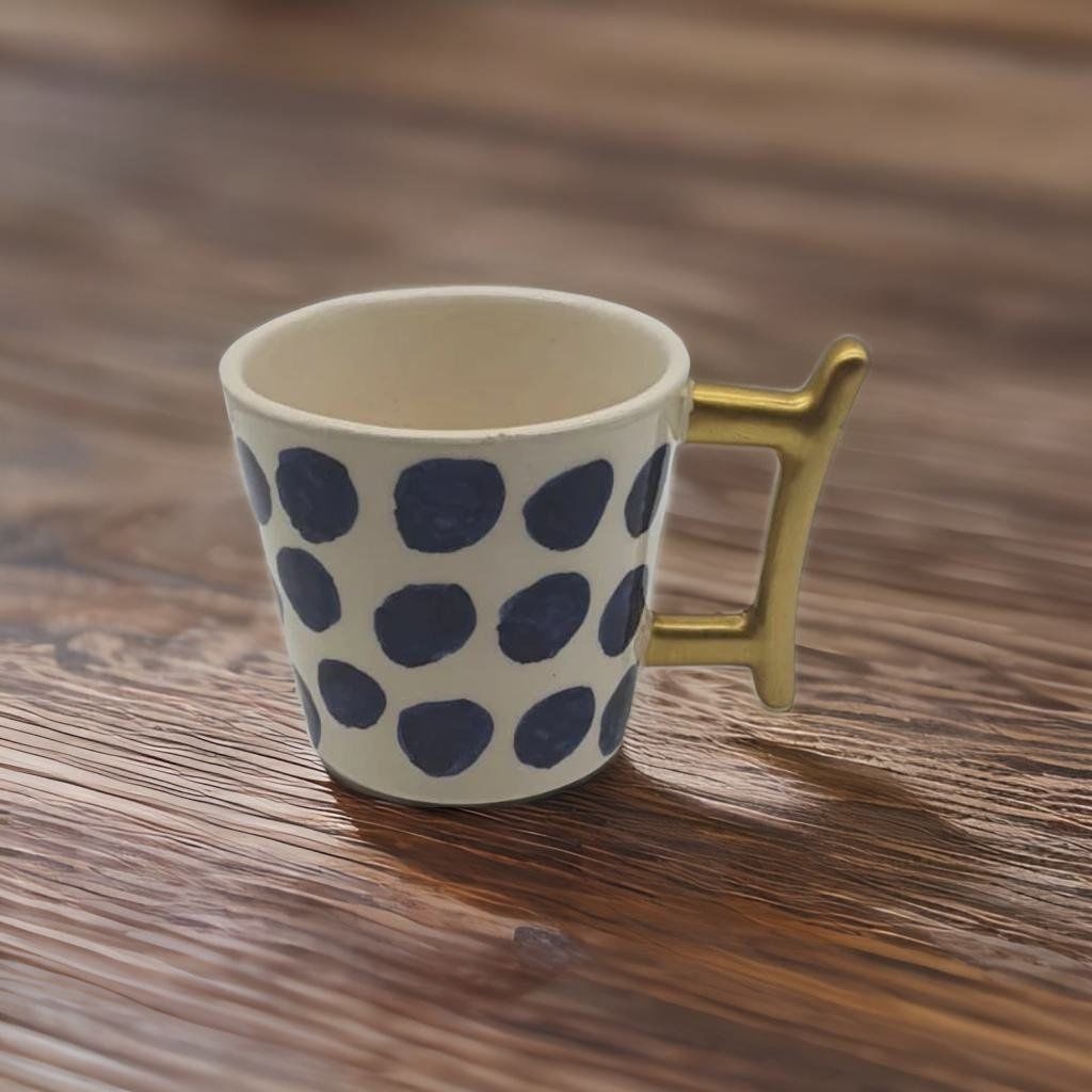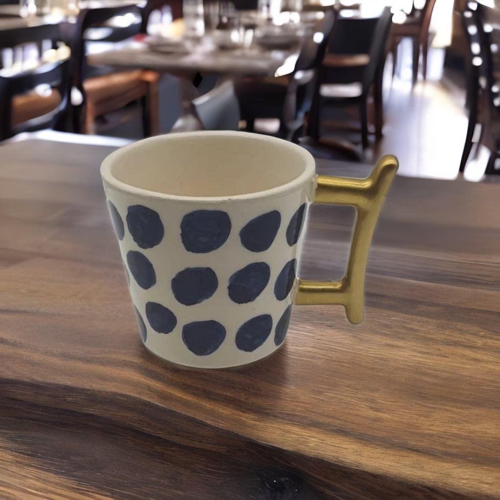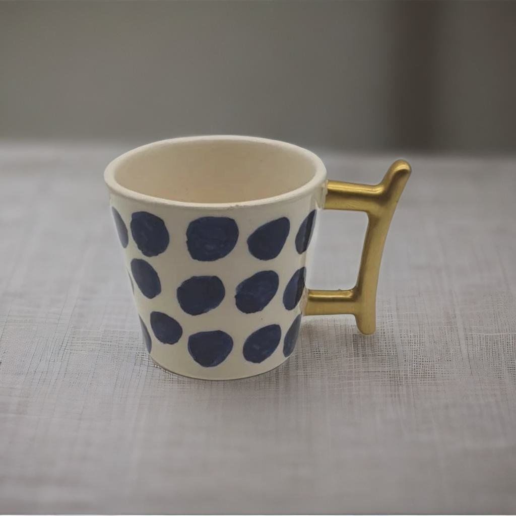 Altın Yaldız Lacivert Puantiyeli Fincan Mug Altın Yaldız Lacivert Puantiyeli Fincan Mug