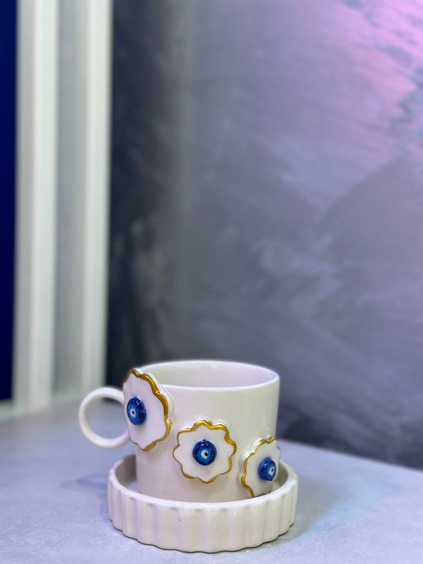 Altın Yaldızlı Üç Çiçek Nazar Fincan Mug