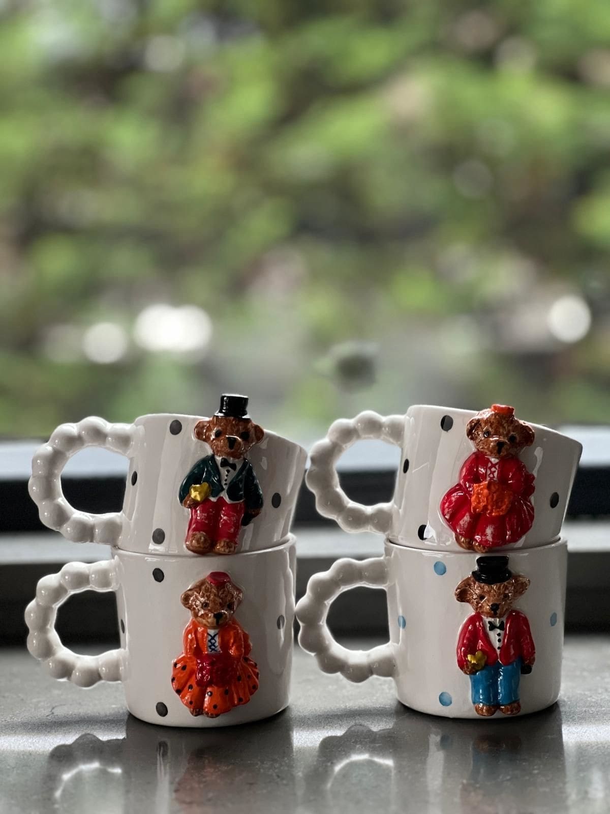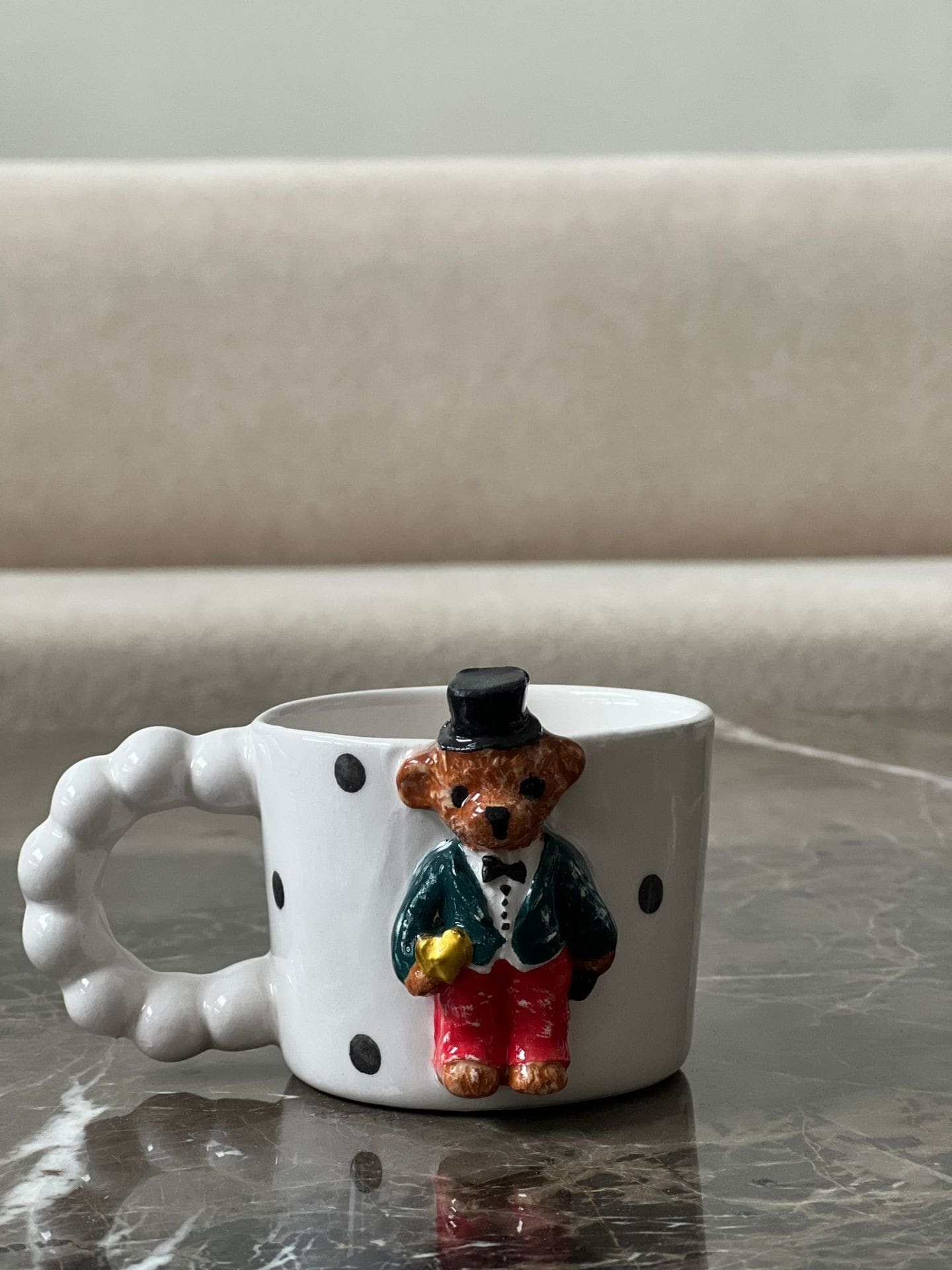 El Yapımı Seramik Teddy Bear Kabartma Figürlü Kupa – 169 ml