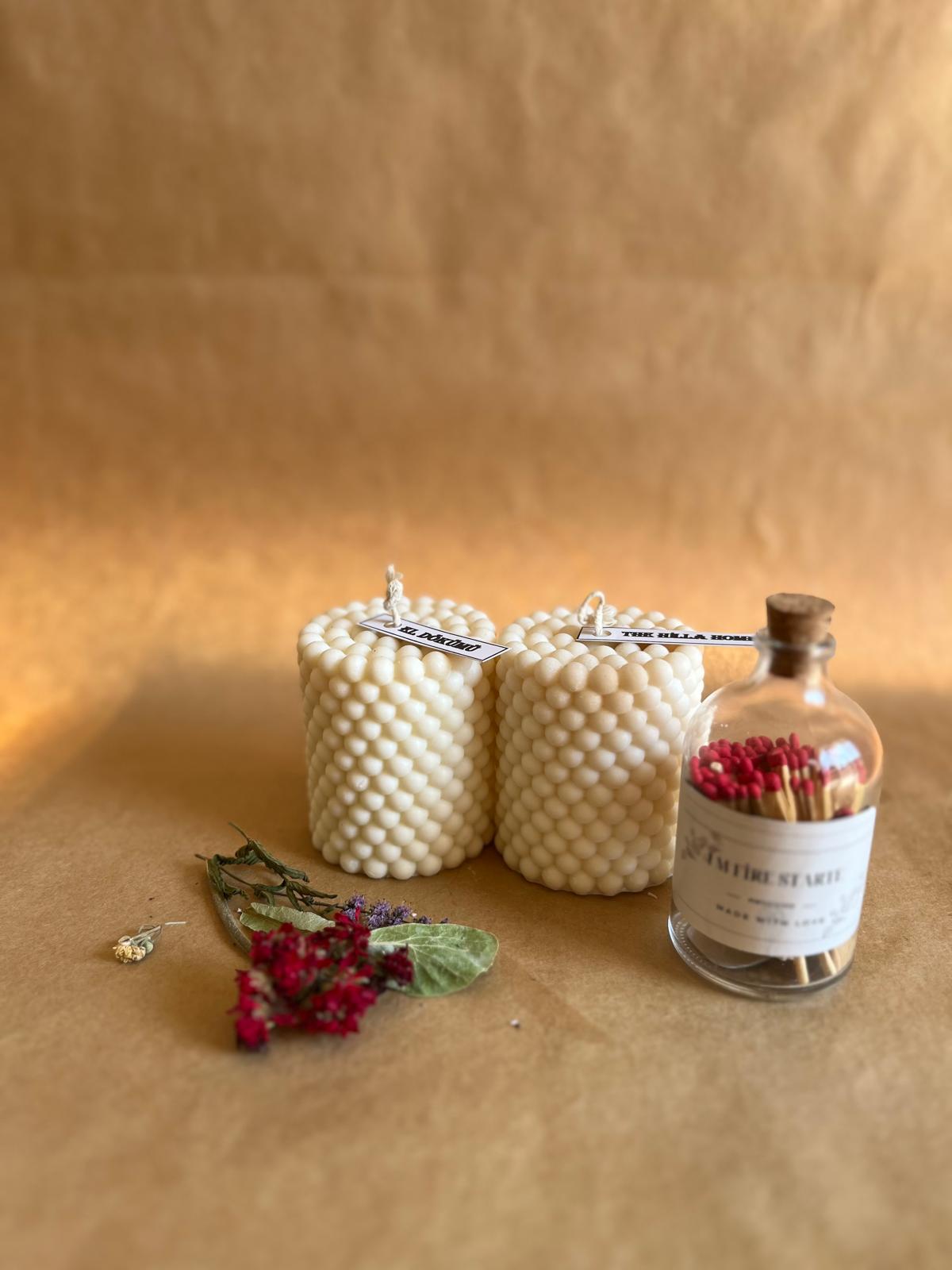 Boncuk Model %100 Soya Mum Seti İkili, hem estetik hem de çevre dostu bir seçenek arayanlar için mükemmel bir tercihtir. Doğal malzemeleri, uzun yanma süreleri ve el yapımı özellikleri ile bu mum seti, evinizin atmosferini zenginleştirirken, sürdürülebilir bir yaşam tarzını destekler. Evinizde sıcak ve davetkar bir ortam yaratmak için bu seti tercih edebilirsiniz.
