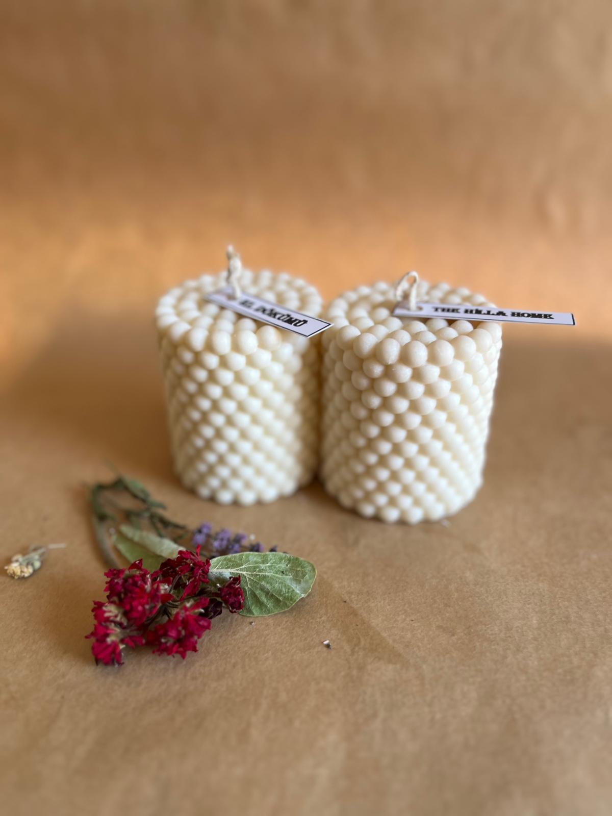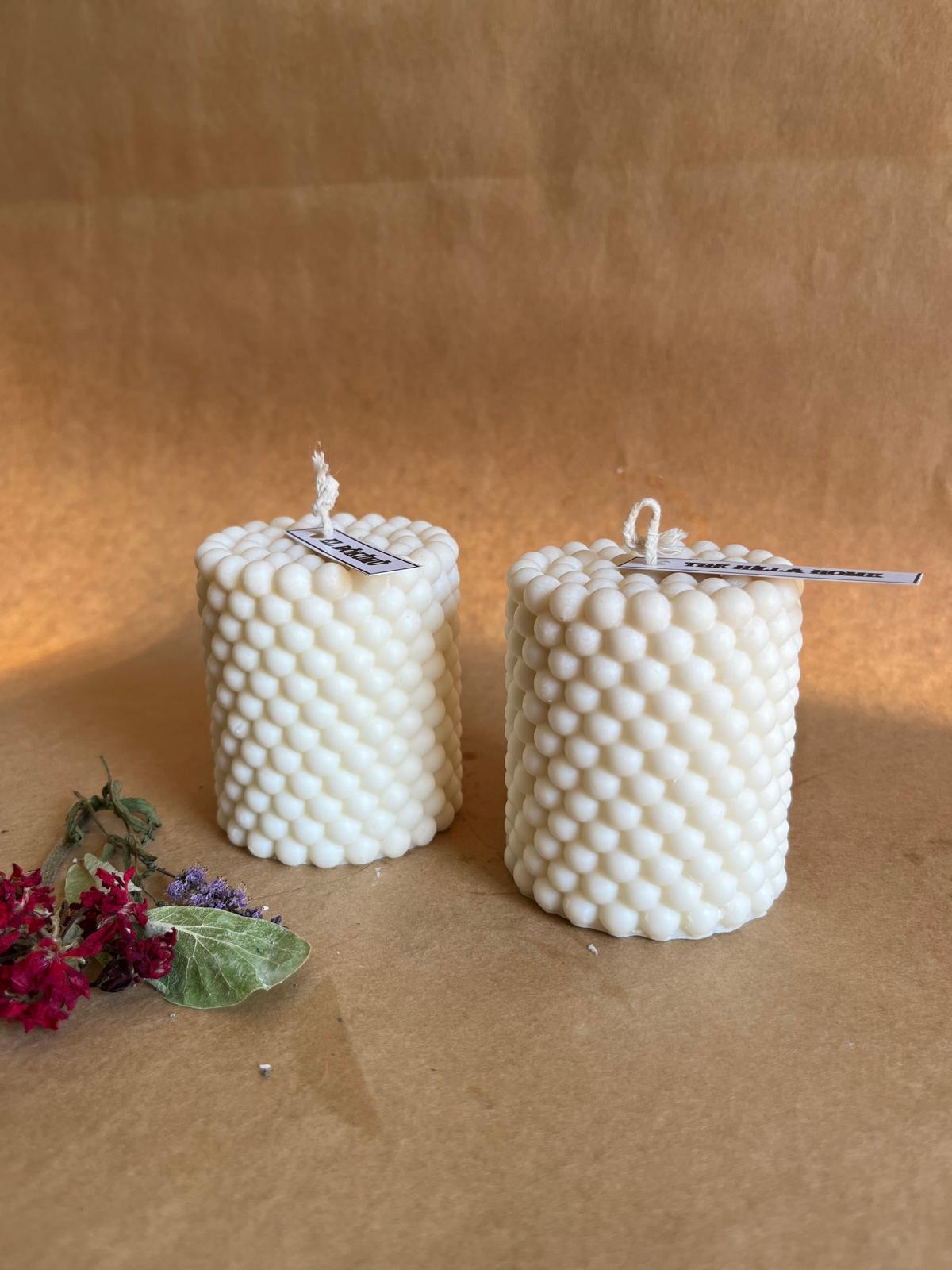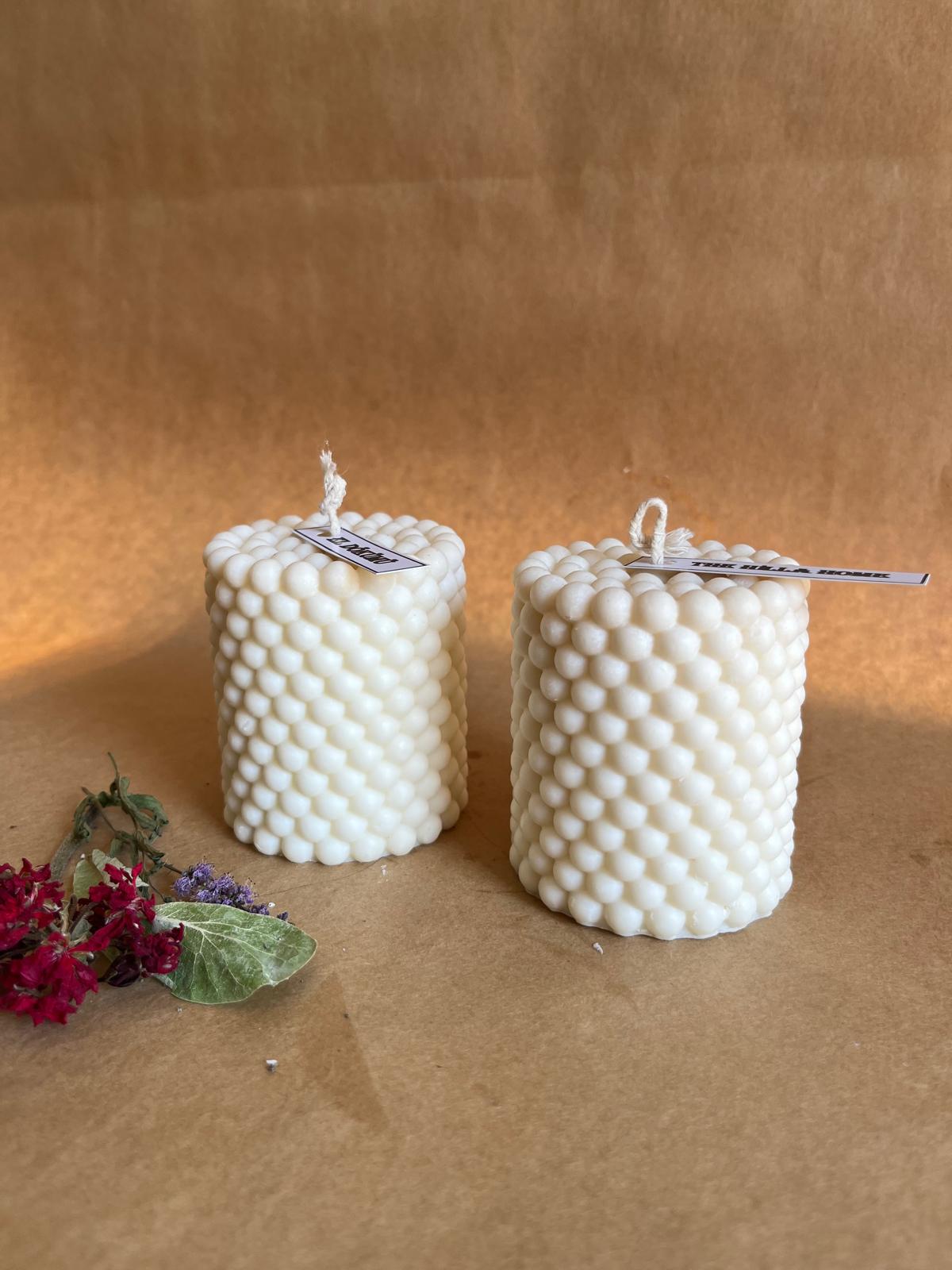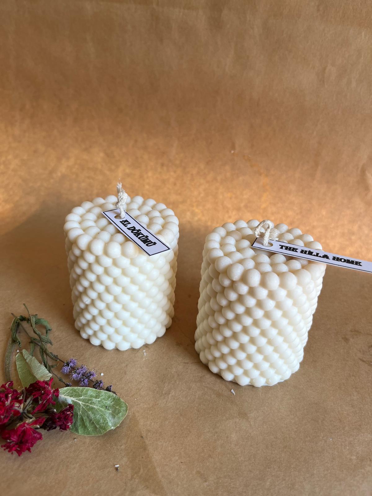 Her bir mum, 8 x 6 cm boyutlarında ve 250 gram ağırlığındadır. Doğal renginde sunulan bu mumlar, her türlü iç mekan dekorasyonuna uyum sağlayacak şekilde tasarlanmıştır. El yapımı olmaları, her bir ürünün benzersiz olmasını ve doğal bir estetik sunmasını sağlar. Ürün yüzeyinde oluşabilecek küçük hava kabarcıkları ve pürüzler, el yapımı olmanın getirdiği doğal bir karakteristik özelliktir.