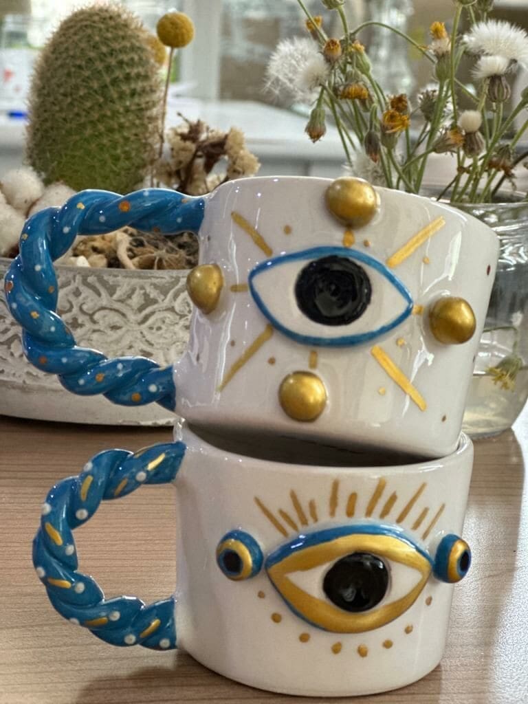 El Yapımı Seramik Kahve Fincanı * İç ve dışı sırlıdır