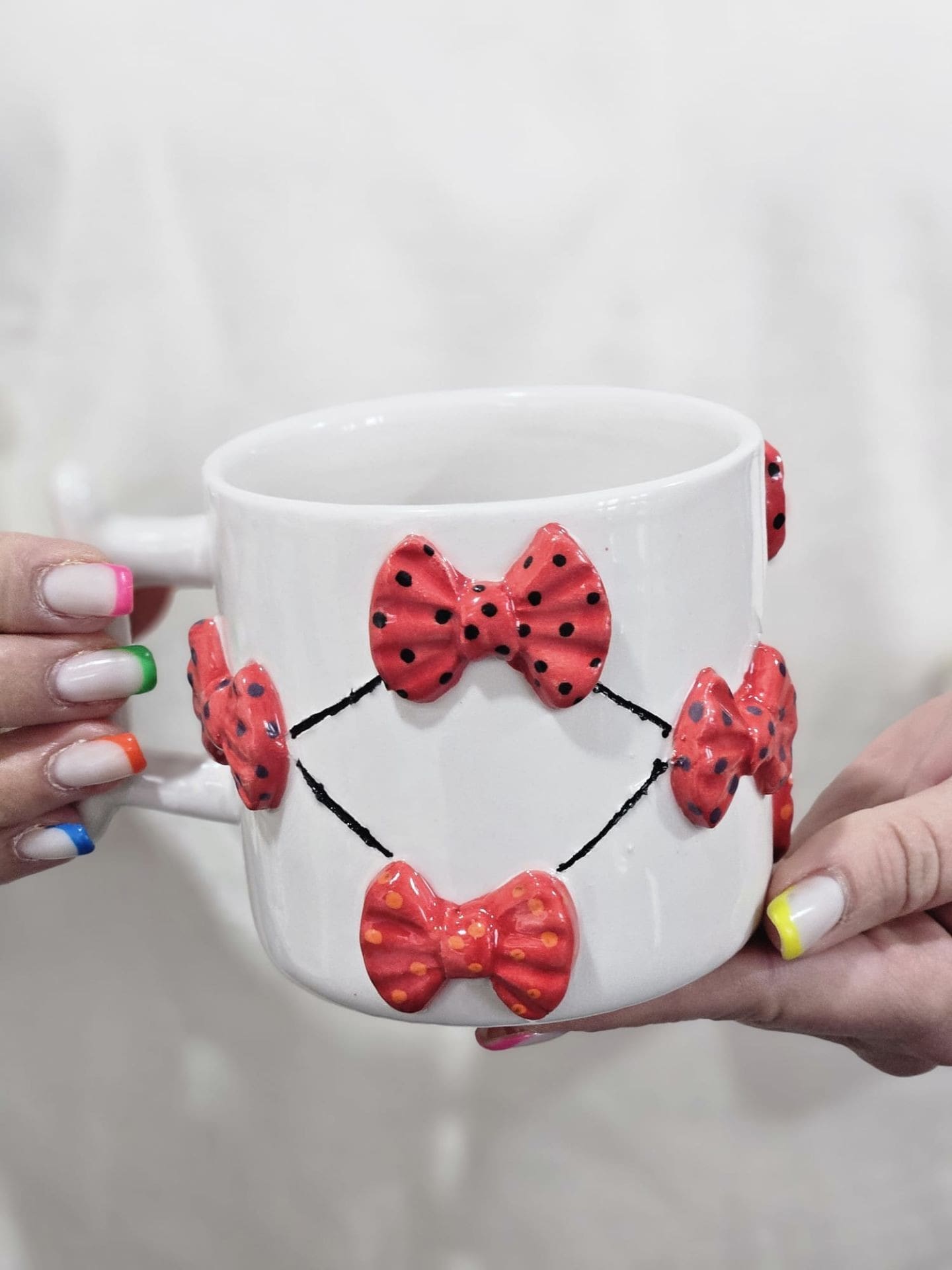 Büyük Boy 420ml Kırmızı Puantiyeli Kurdela Temalı Kupa