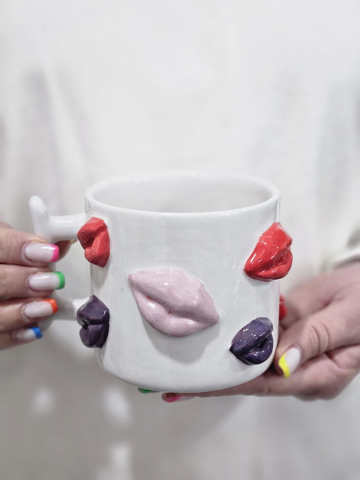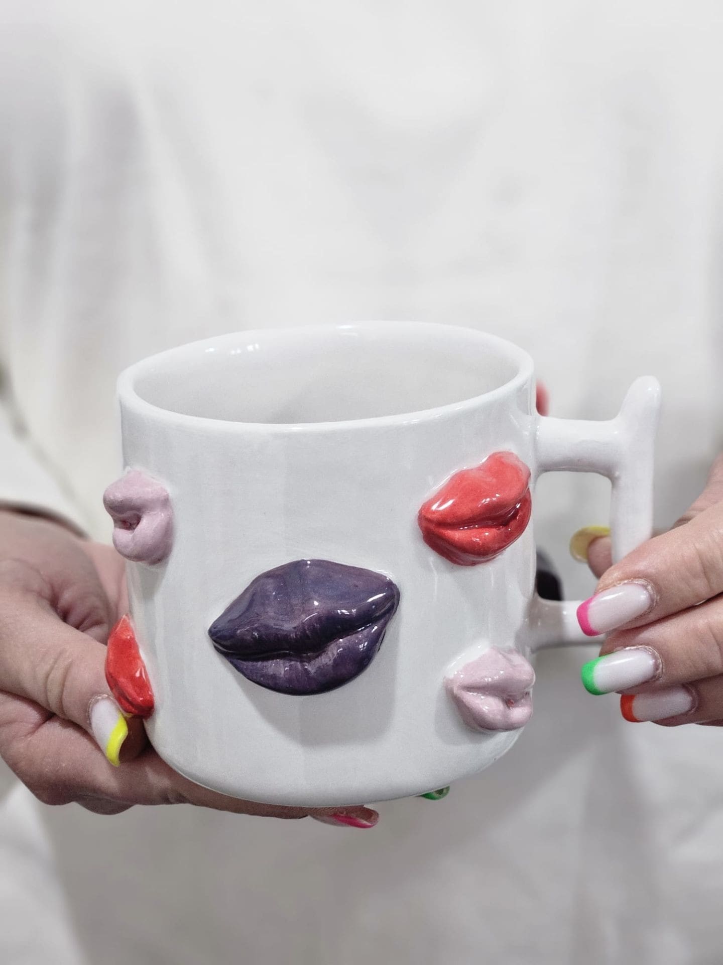 Büyük Boy 420ml Rengarenk Dudaklı Temalı Kupa