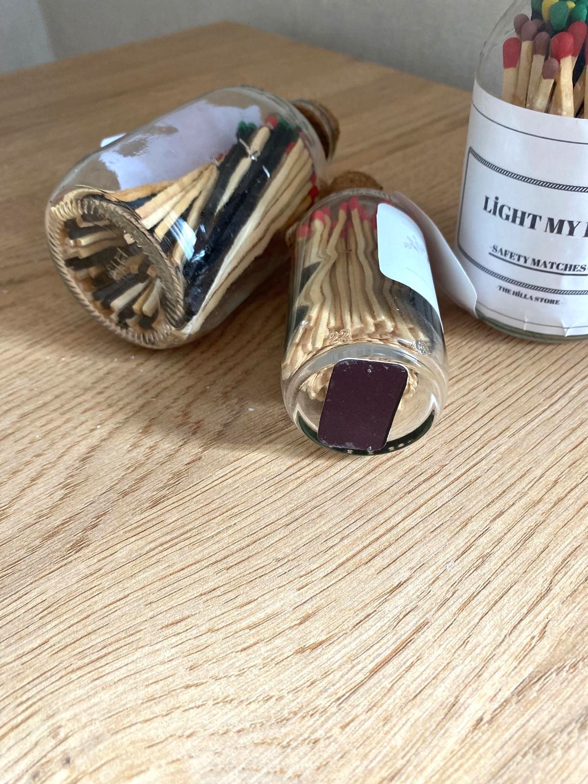 - Şişe Malzemesi: Dayanıklı cam malzeme, kibritlerinizi korurken estetik bir görünüm sunar.