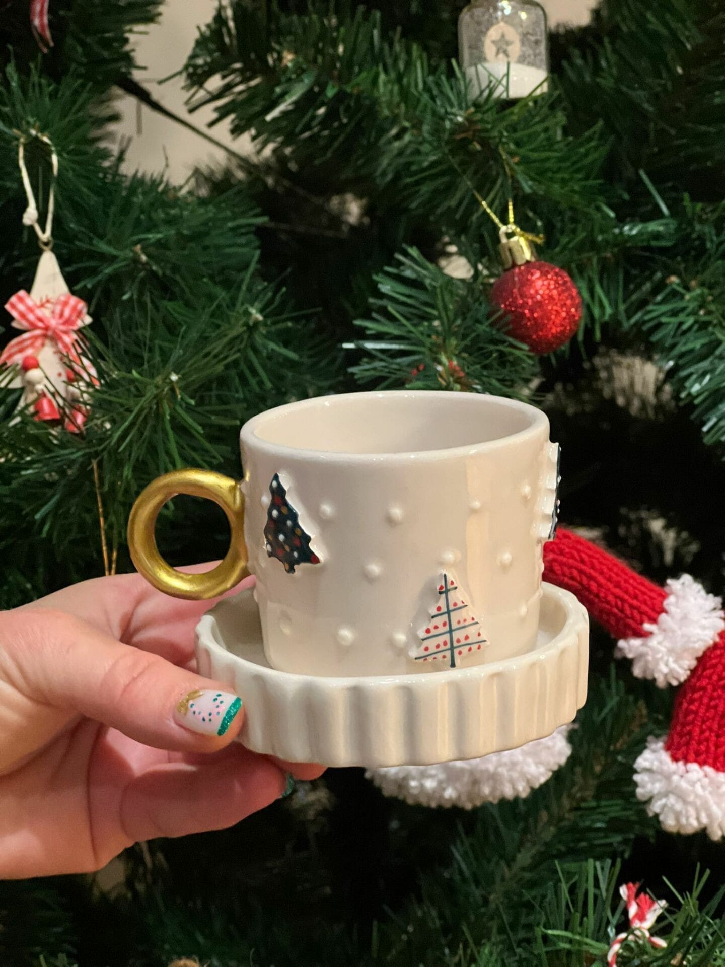 Her bir detayıyla özenle işlenmiş olan, fincana ayrı bir zarafet katarken, parmak izleriyle şekillendirilen seramik malzeme sayesinde her fincan eşsiz bir sanat eserine dönüşür. El yapımı olduğundan dolayı, her fincan birbirinden farklı ve özeldir.
