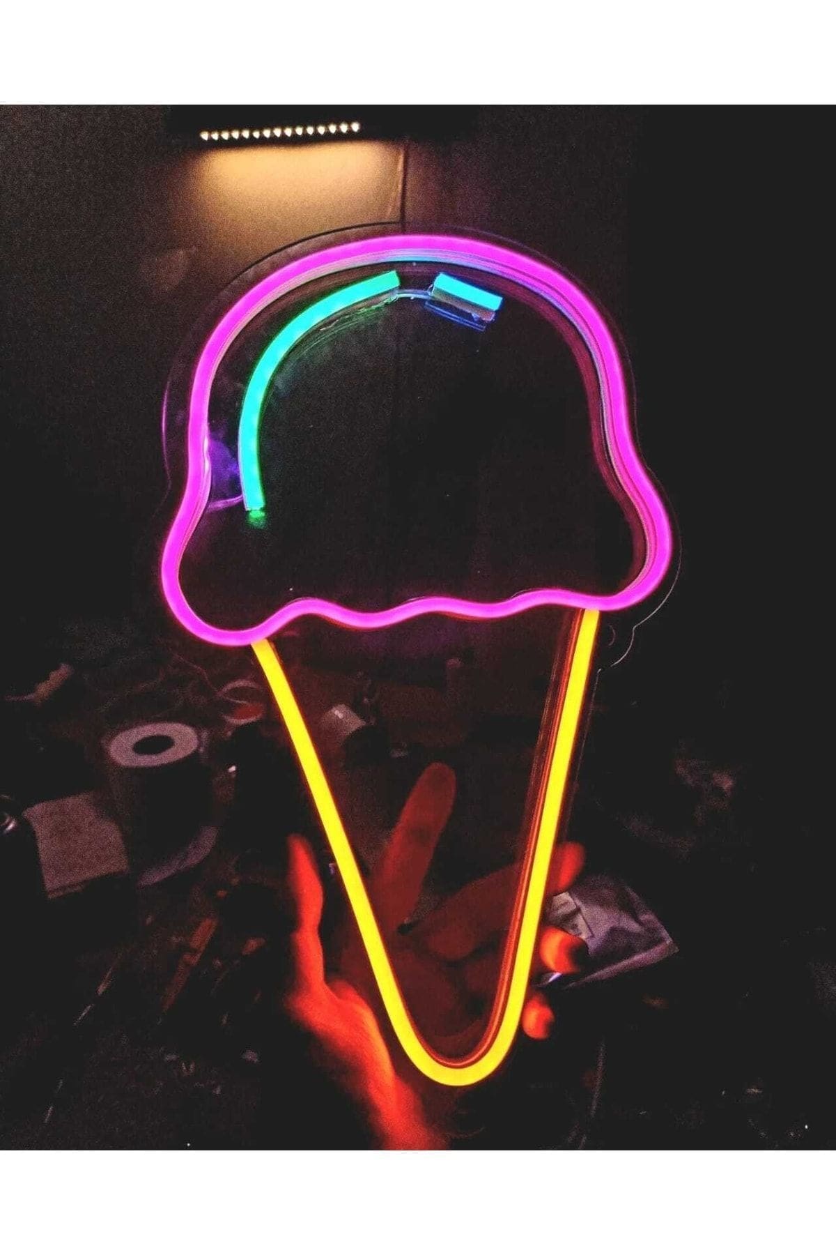 Dondurma figürü ; Siparişiniz üzere özel taban malzemesi kesilip, görseldeki şekilde oyulduktan sonra içine el işçiliği ile seçtiğiniz renkte LED Neon şerit yapıştırılarak üretilir. ; Paketten çıkan vida malzemeleri ile kolayca istediğiniz yüzeye monte edebilir ve fişe takip kullanmaya başlayabilirsiniz. ; Yaşam alanınızın ambiyansını değiştirin ve hayata olan mesajınızı ışıklandırın. ; Çalışma Gerilimi: DC 12V 2A Adaptör ; Kablo Uzunluğu: 200cm ; Ürün Ölçüleri: 25cm x 15cm ; Üretim süresi 7-10 gündür ;