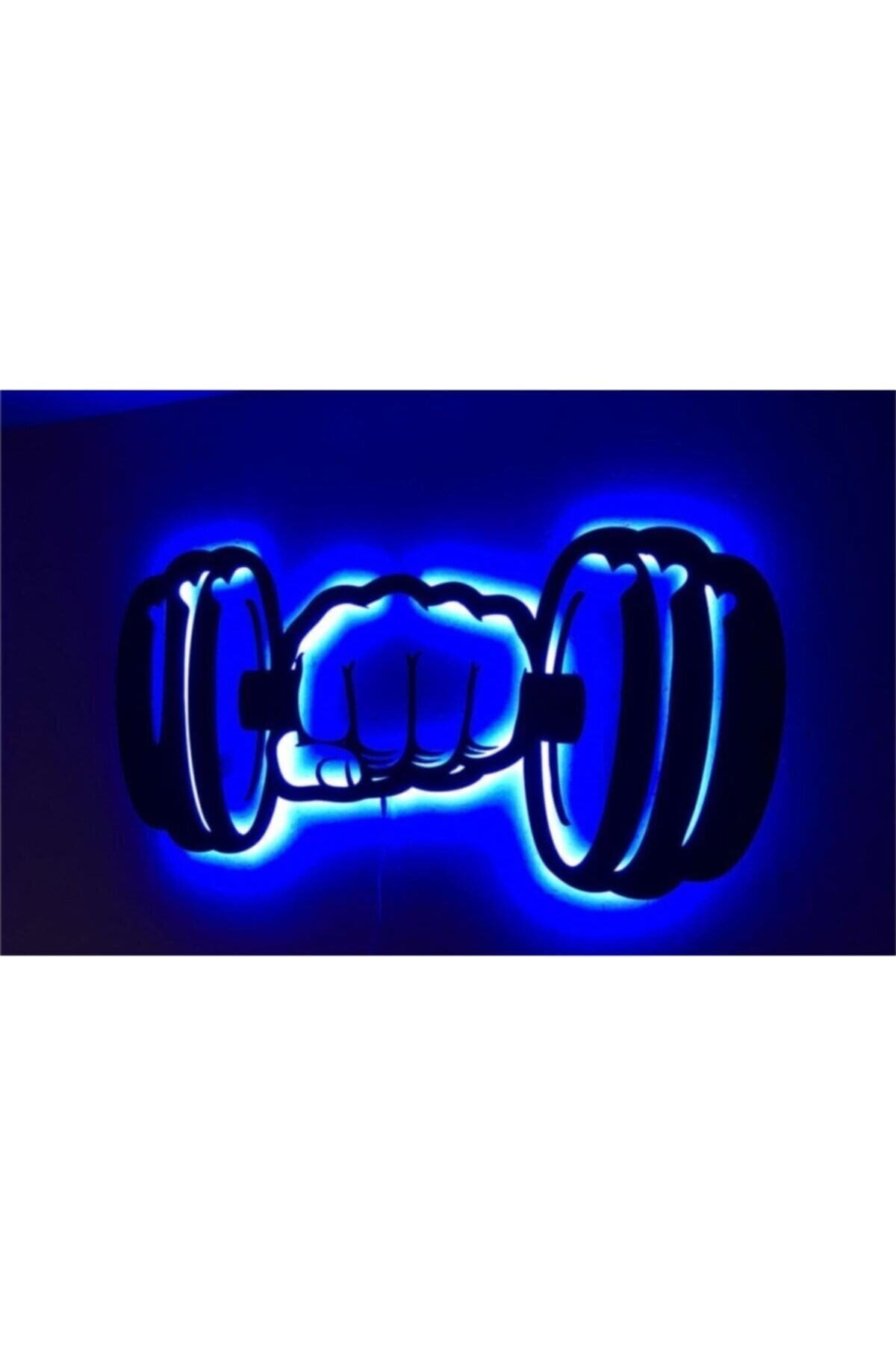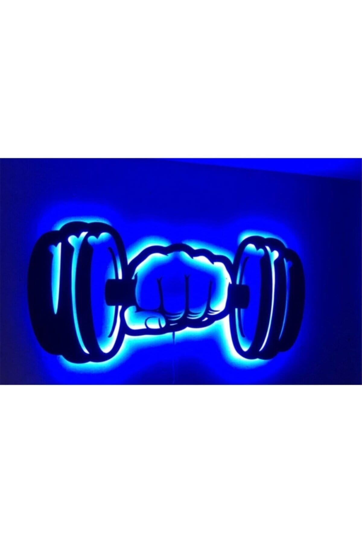 Dumbell Led Işıklı Ahşap Tablo – Led Işıklı Duvar Dekoru