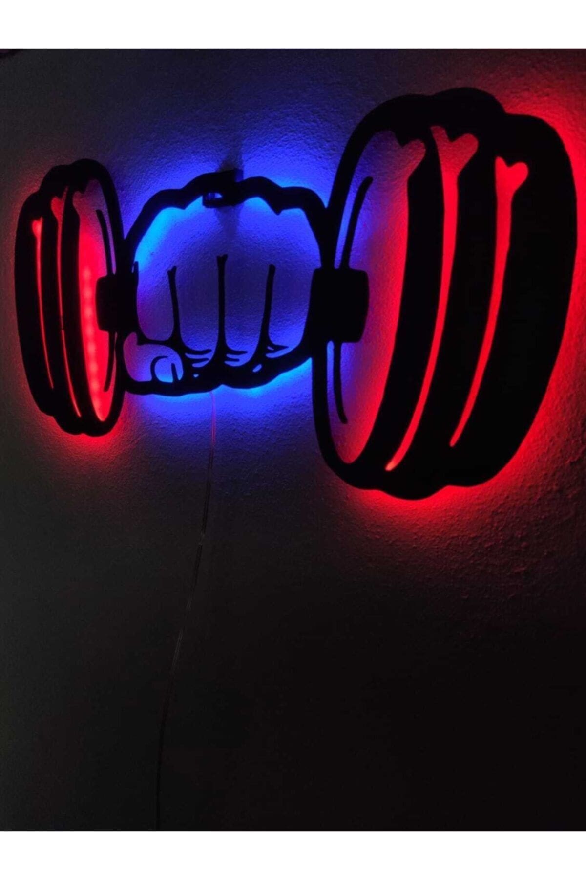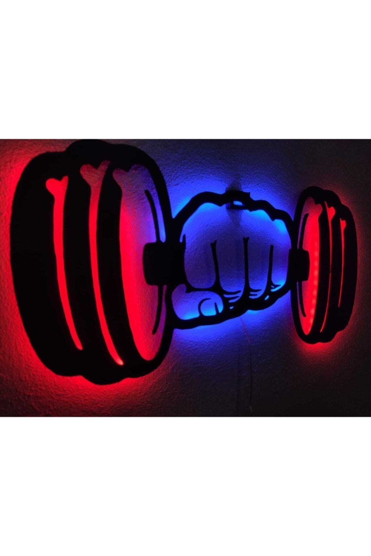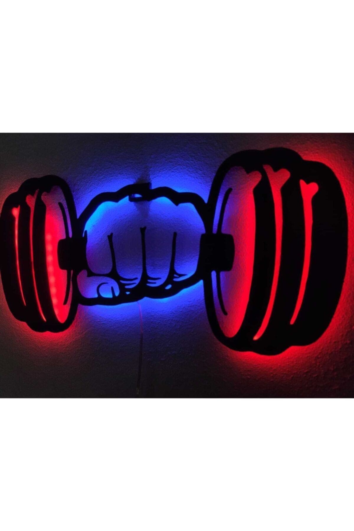 Dumbell – Ledli – Siyah Ahşap Tablo – 25×51