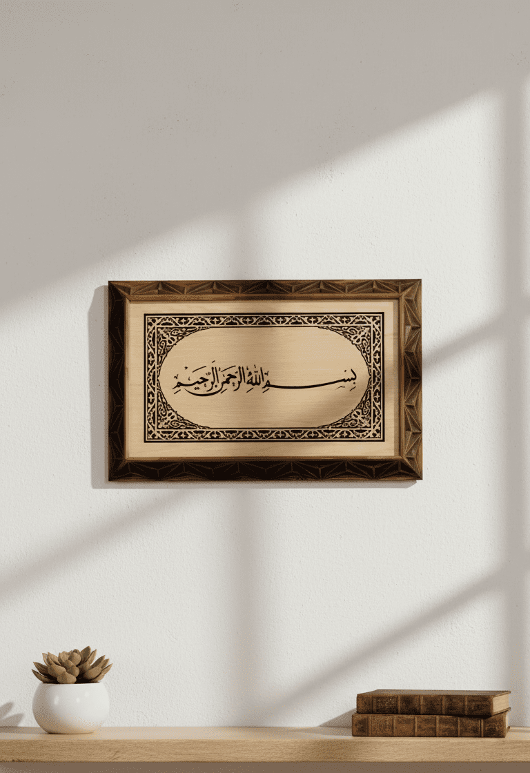 Bu ürün, özellikle İslami Bismillahirrahmanirrahim yazılı ahşap duvar dekoru arayanlar için tasarlanmış özel bir çalışmadır. Bismillahirrahmanirrahim, Müslümanların hayatında hemen her başlangıcın başında yer alan, rahmet ve merhameti hatırlatan çok güçlü bir ifadedir. Bu ifade, doğal ahşabın sıcak dokusu üzerine işlendiğinde, yalnızca göze hitap eden bir tasarım olmaktan çıkar; aynı zamanda her bakışta insana “Bismillah ile başla” duygusunu hatırlatan anlamlı bir duvar dekoru haline gelir.