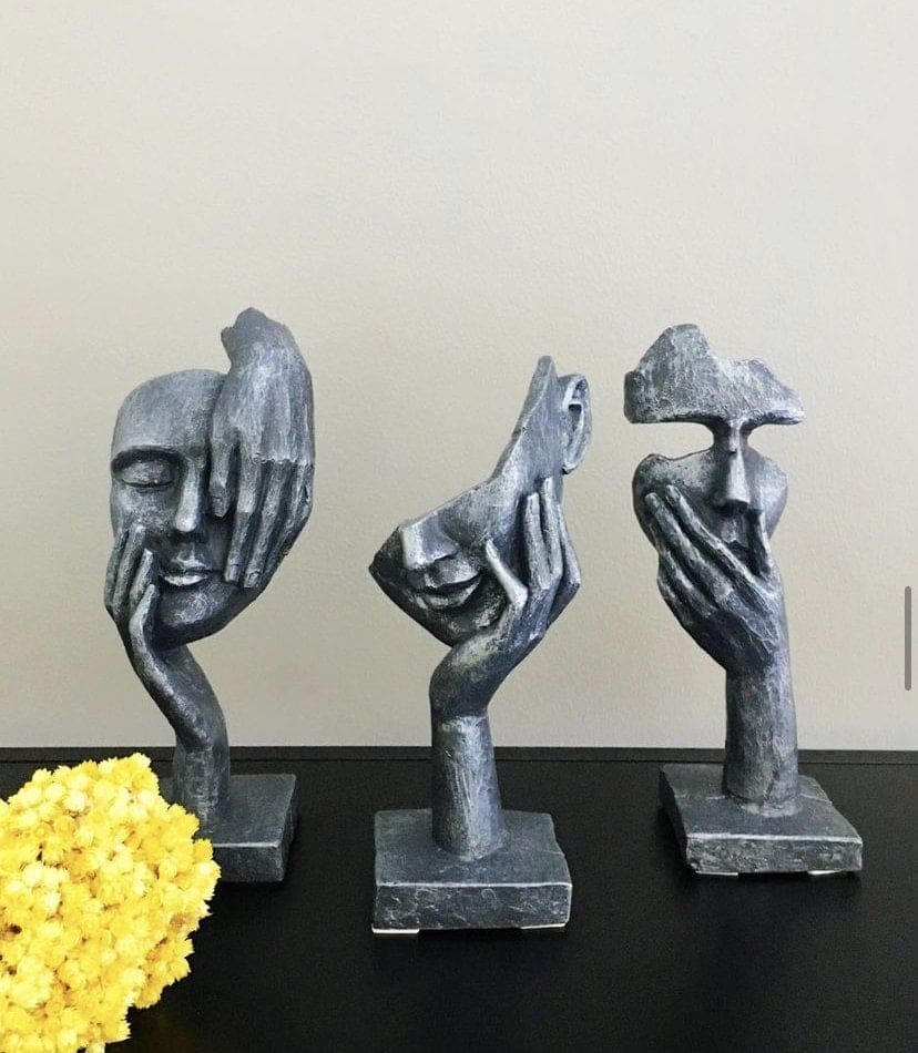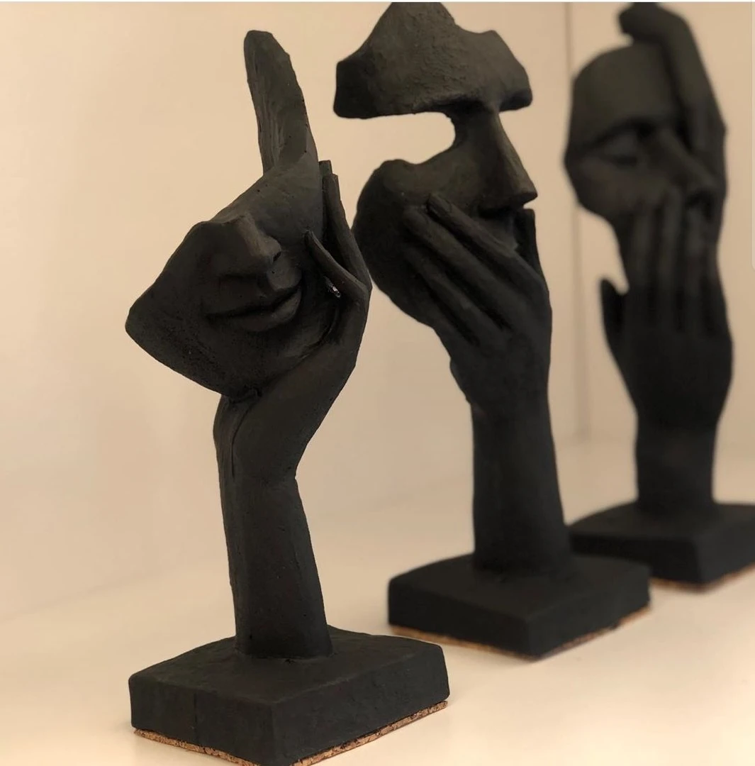 Duymuyorum, Bilmiyorum, Görmüyorum ürünlerimiz 3 parça setten oluşmaktadır. Dilerseniz toplu şekilde, dilerseniz tek tek sipariş verebilirsiniz. Evinizde ya da iş yerinizde sunabileceğiniz çok hoş bir decor ürünüdür.  Ürün kendi atölyemizde tarafımızdan yapılmaktadır. İstediğiniz renk boyayı sipariş esnasında bildirdiğiniz taktirde Duymuyorum, Bilmiyorum, Görmüyorum ürününü size özel boyamaktayız.