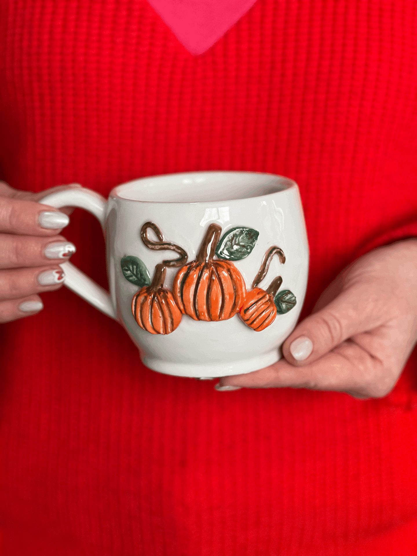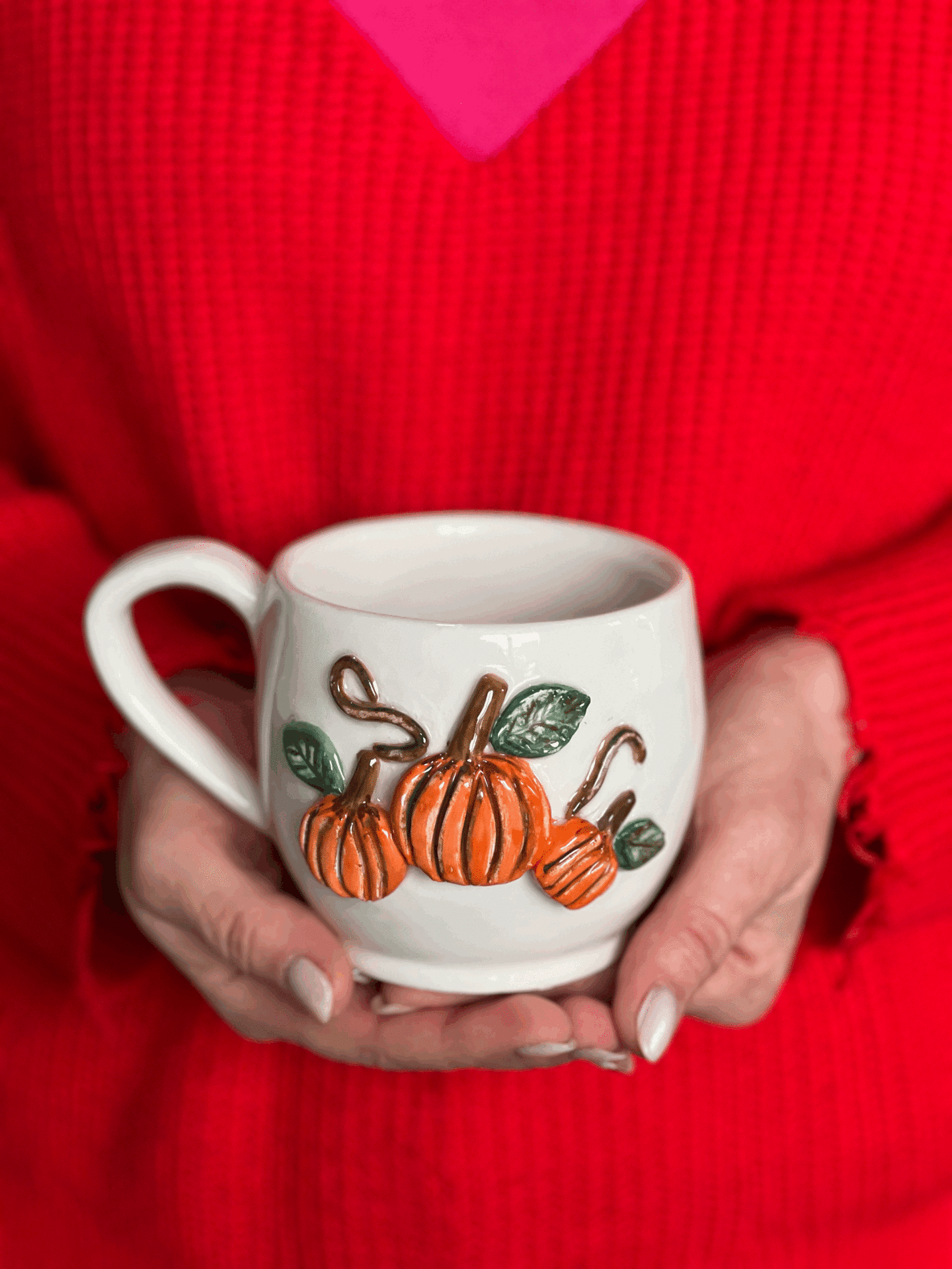 El Yapımı Büyük Boy 400ml 3D Kabak Kabartmalı Kupa