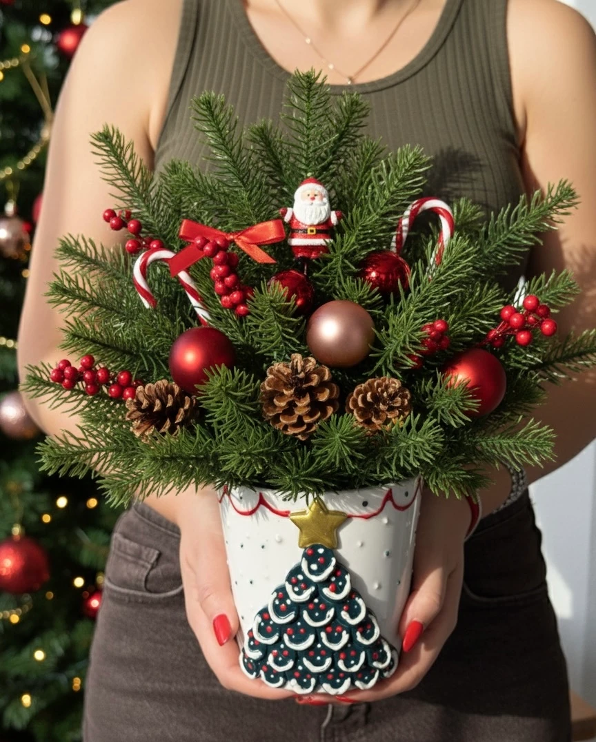 El Yapımı Christmas Çam Vazo Saksı