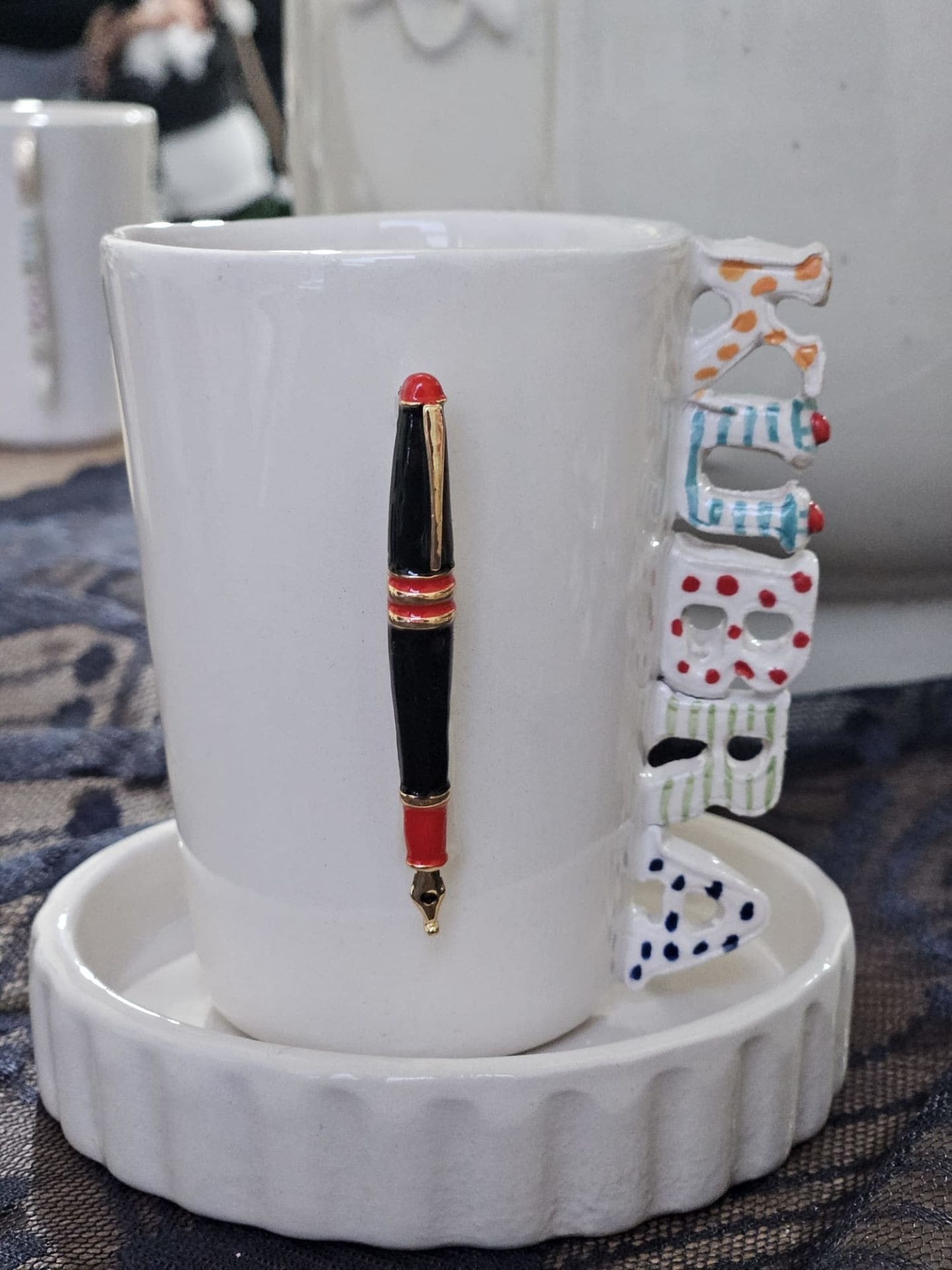 El Yapımı İsimli Dolma Kalem Figürlü Fincan