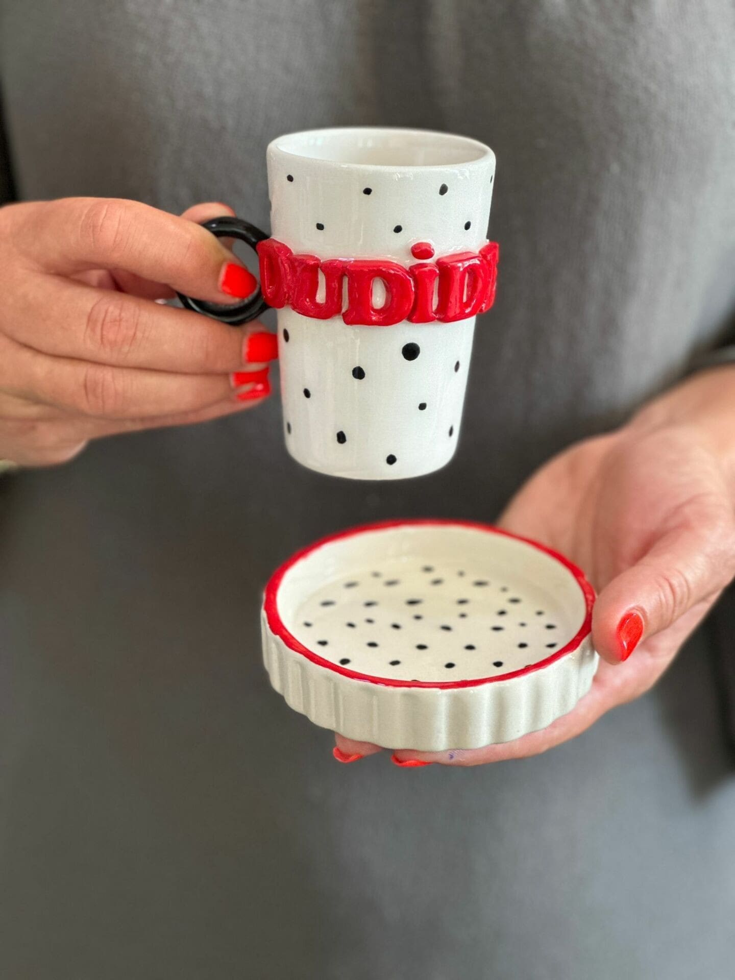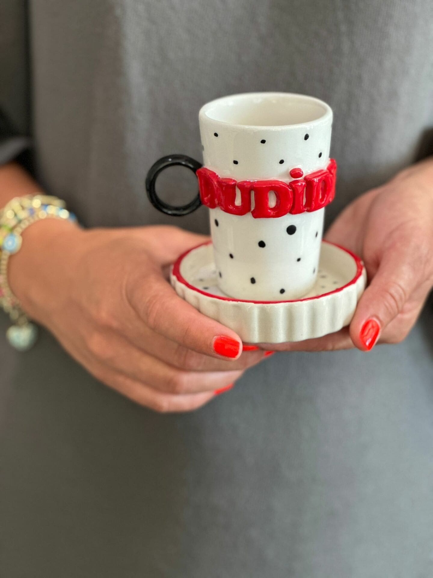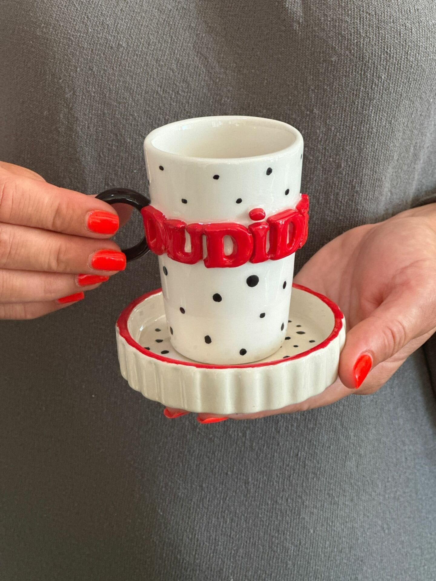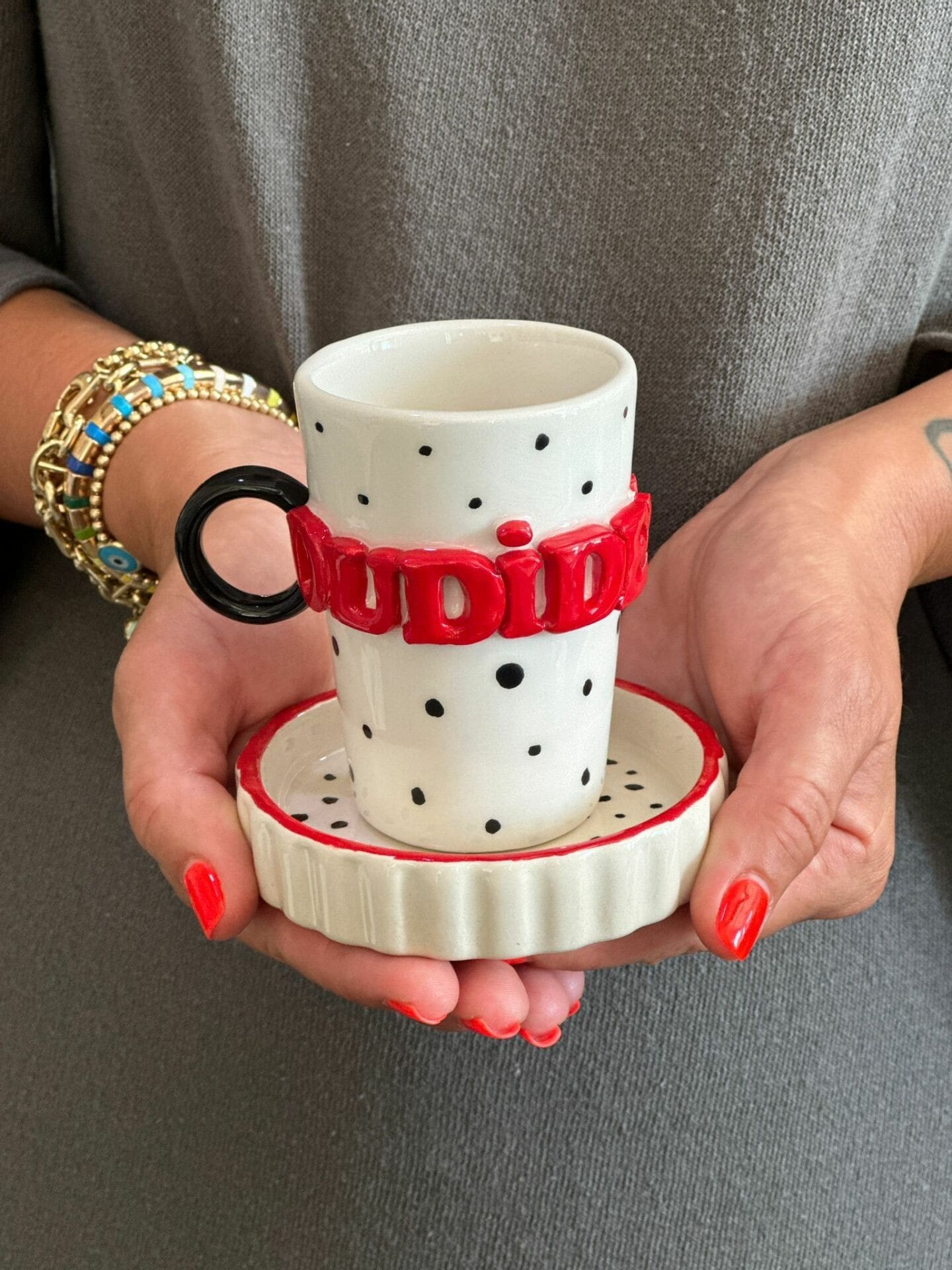 El Yapımı Özel Tasarım Yuvarlak Kulp İsimli Fincan
