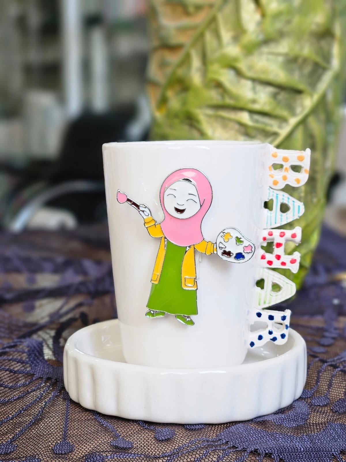 El Yapımı Tesettürlü Ressamlara Özel İsimli Fincan