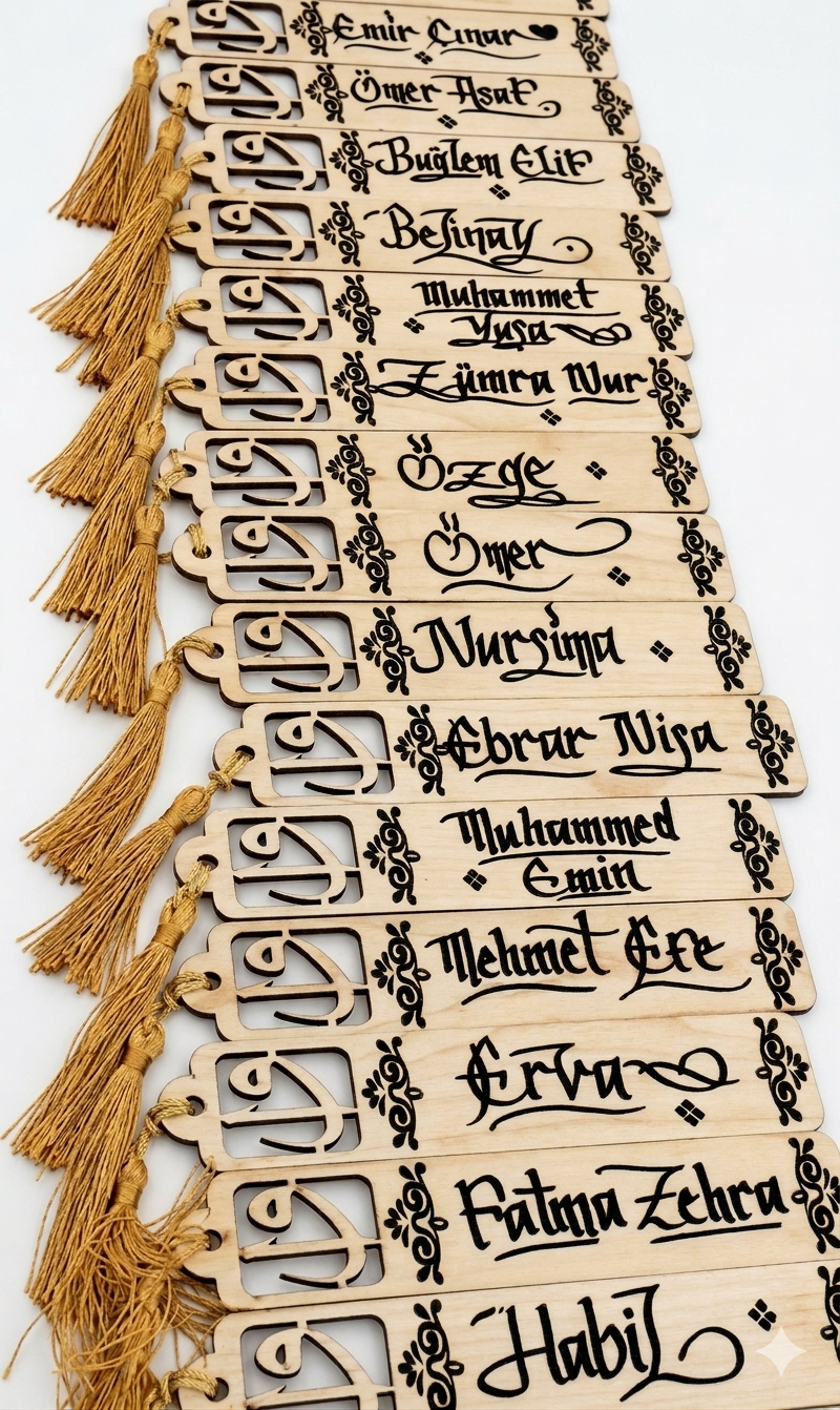 Bu el yapımı, isminize özel hazırlanan ahşap ayraçlar, okuma deneyiminizi daha keyifli ve özel hale getirmek için tasarlandı. Şık ve zarif tasarımıyla kitaplarınıza değer katan bu ayraçlar, hem kendiniz için hem de sevdikleriniz için harika bir hediye seçeneği. ✨