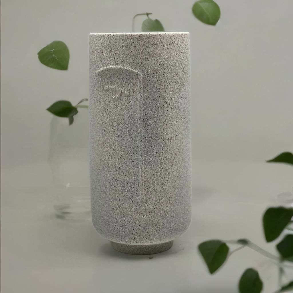 Bu minimalist tasarımlı vazo, yüz şeklindeki line art stili ile öne çıkıyor. Siyah beyaz renkleri ve modern görünümü ile dikkat çeken bu vazo, her türlü iç mekan dekorasyonuna uyum sağlar. Yüz tasarımı, duygu ifadesi ve soyut sanatın birleşimiyle oluşan bu dekoratif obje, evinizin veya ofisinizin havasını tamamlayacak ve modern bir estetik sunacak. İlginç ve dekoratif bir obje arayanlar için ideal bir seçenek olan bu vazo, hem kendiniz için hem de sevdikleriniz için harika bir hediye olabilir. Organik malzemelerden üretilmiş olan bu vazo, çevre dostu bir seçimdir ve ev dekorasyonunuzun kalitesini artıracak bir parça olarak kullanabilirsiniz.