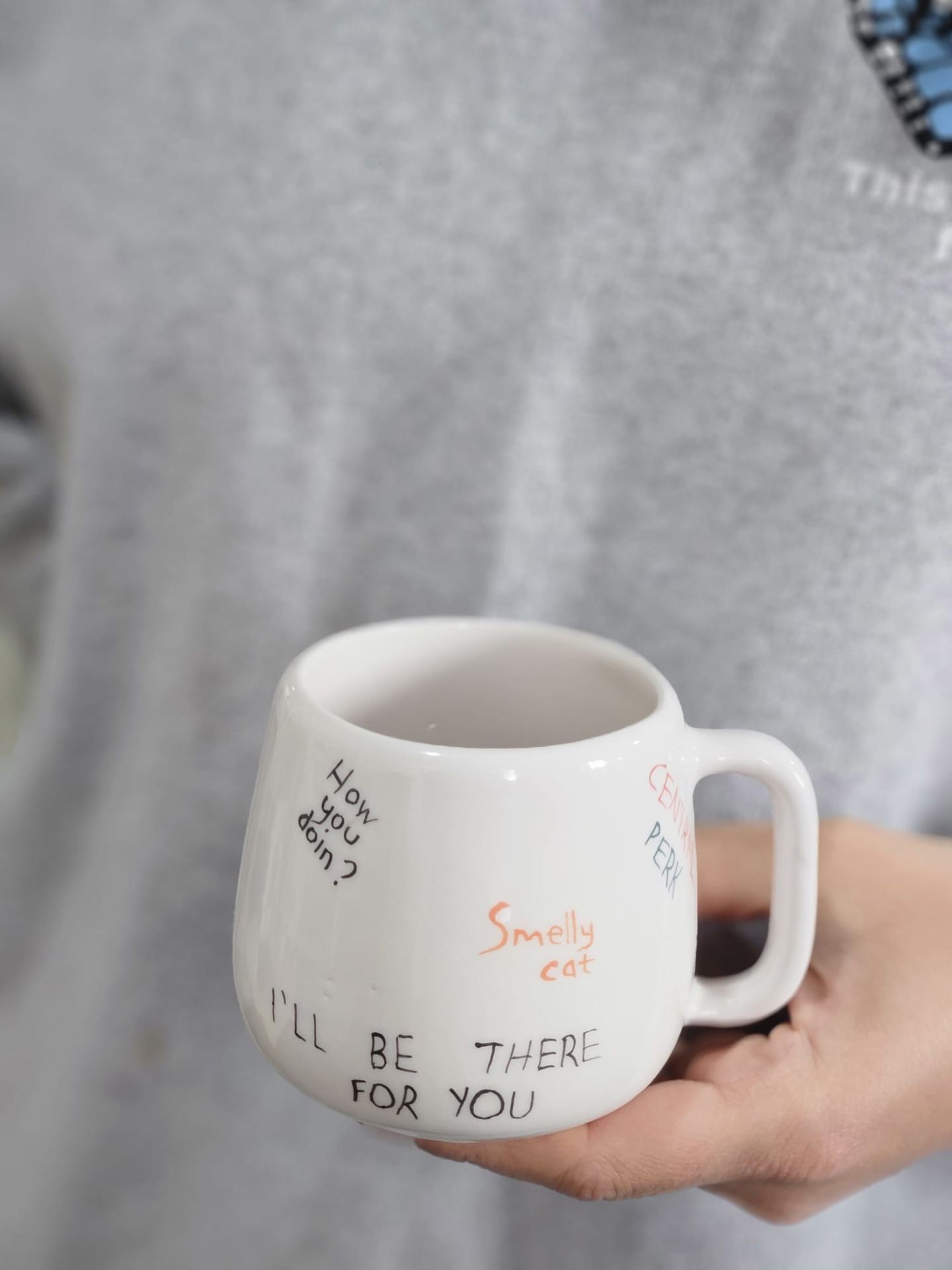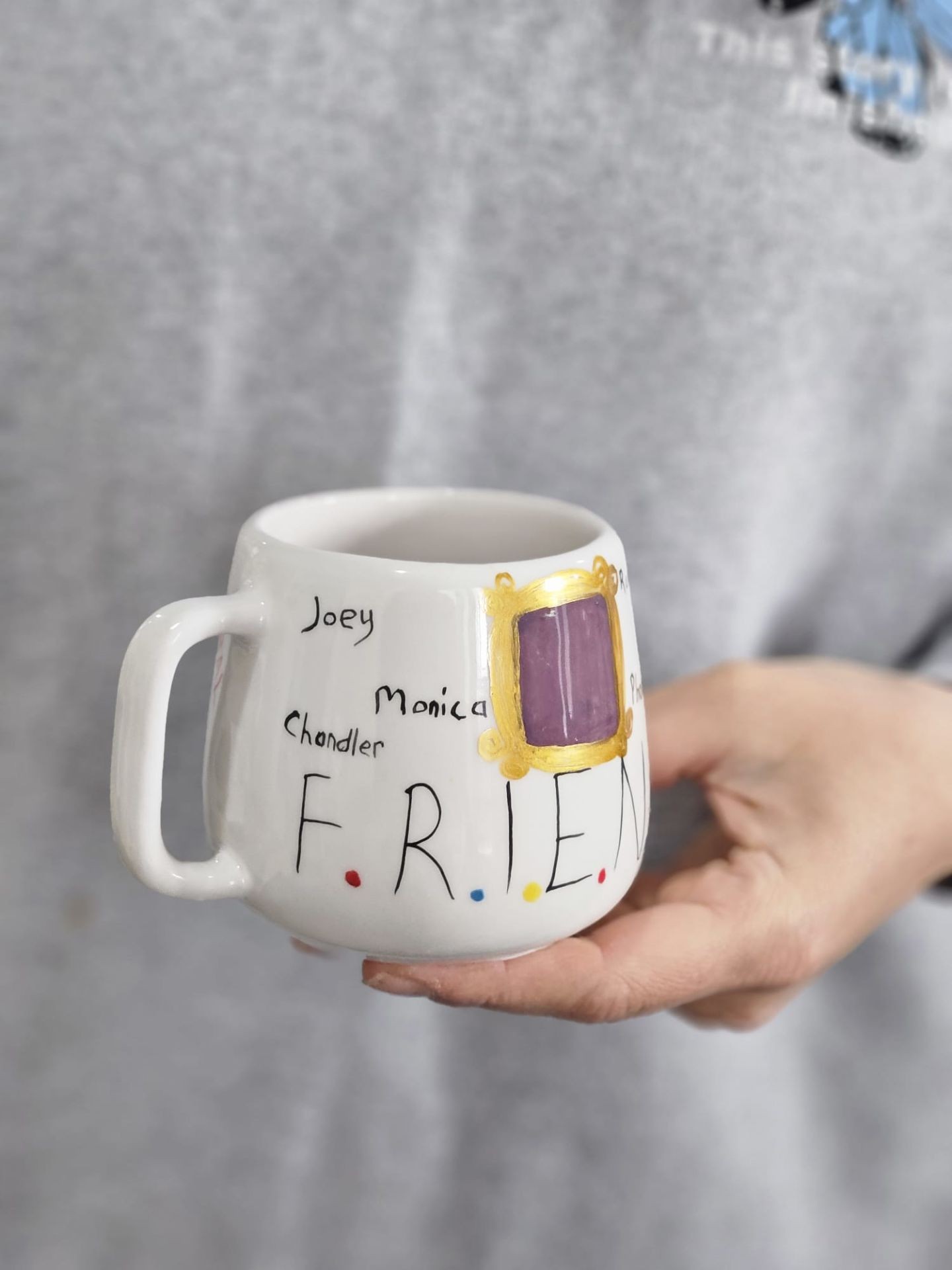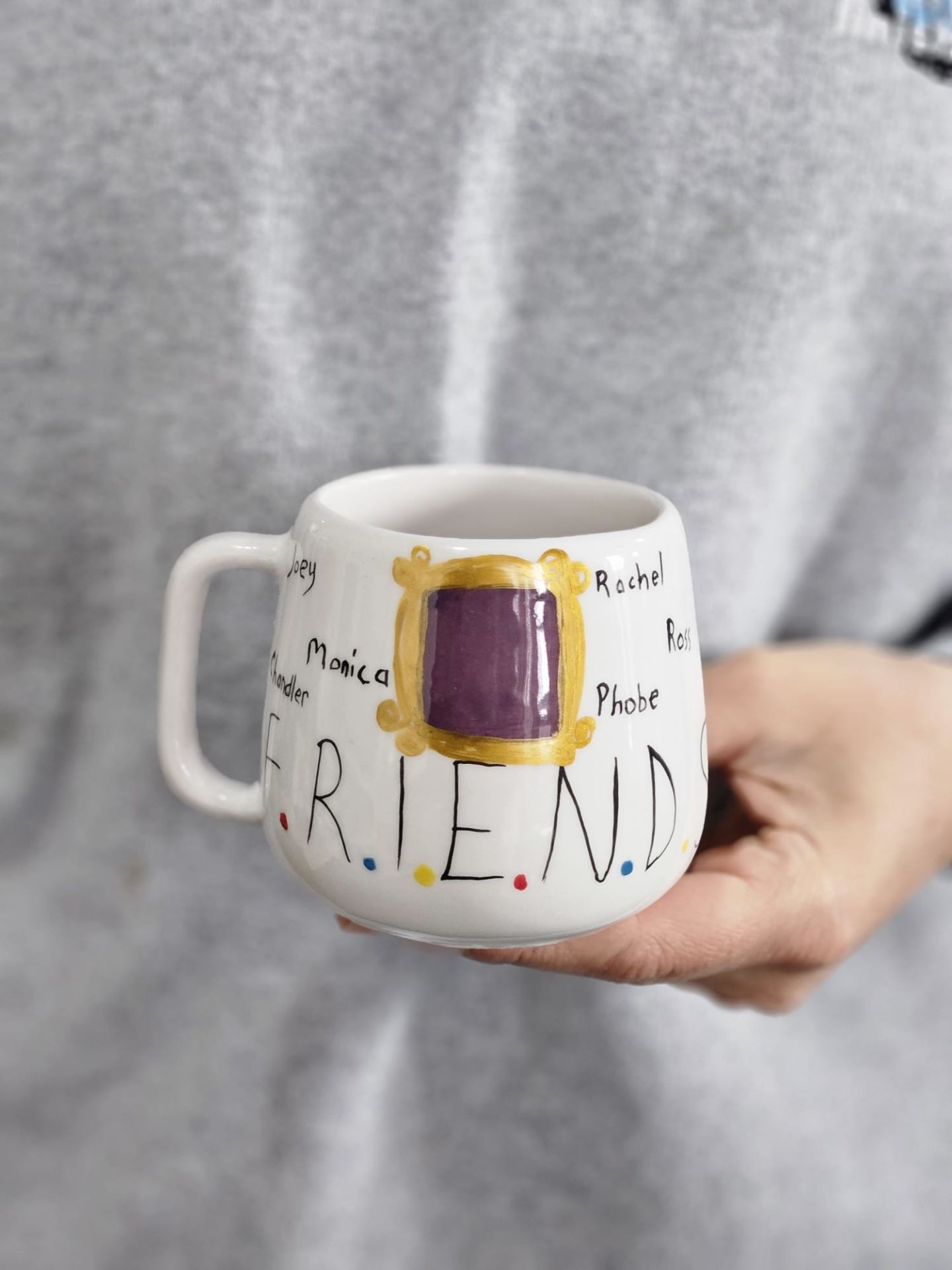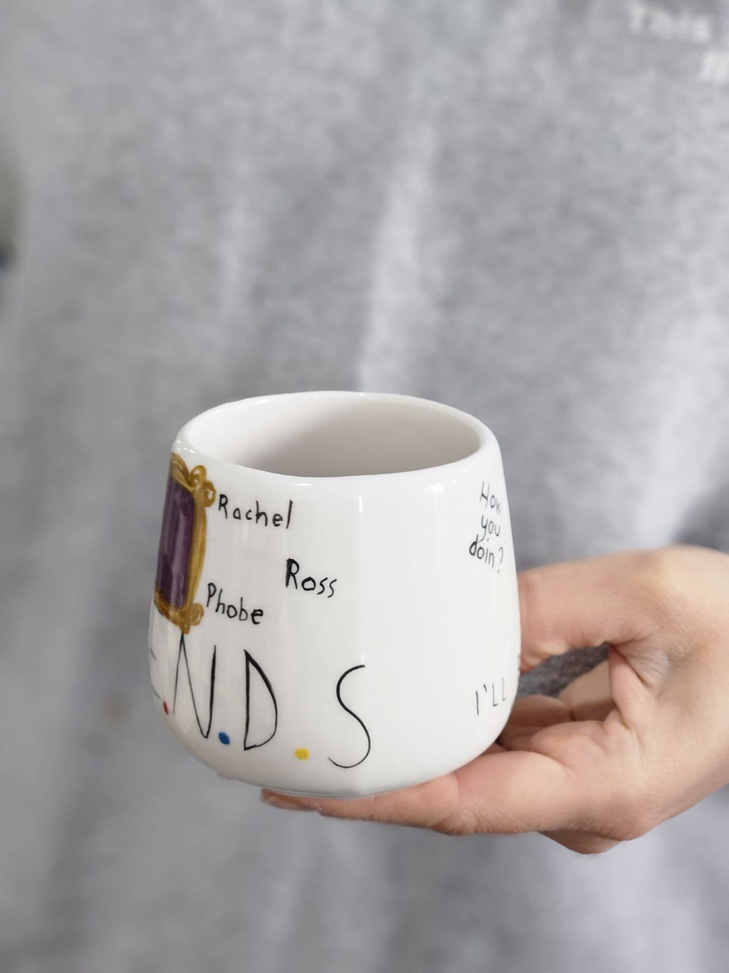 Friends Dizisi Hayranlarına Özel El Yapımı Seramik Kupa – 240 ml1 adet kupa fiyatıdır.240ml ölçüsündedirFriends dizisini sevenler için özel olarak tasarlanan bu el yapımı ve el boyaması seramik kupa, 240 m